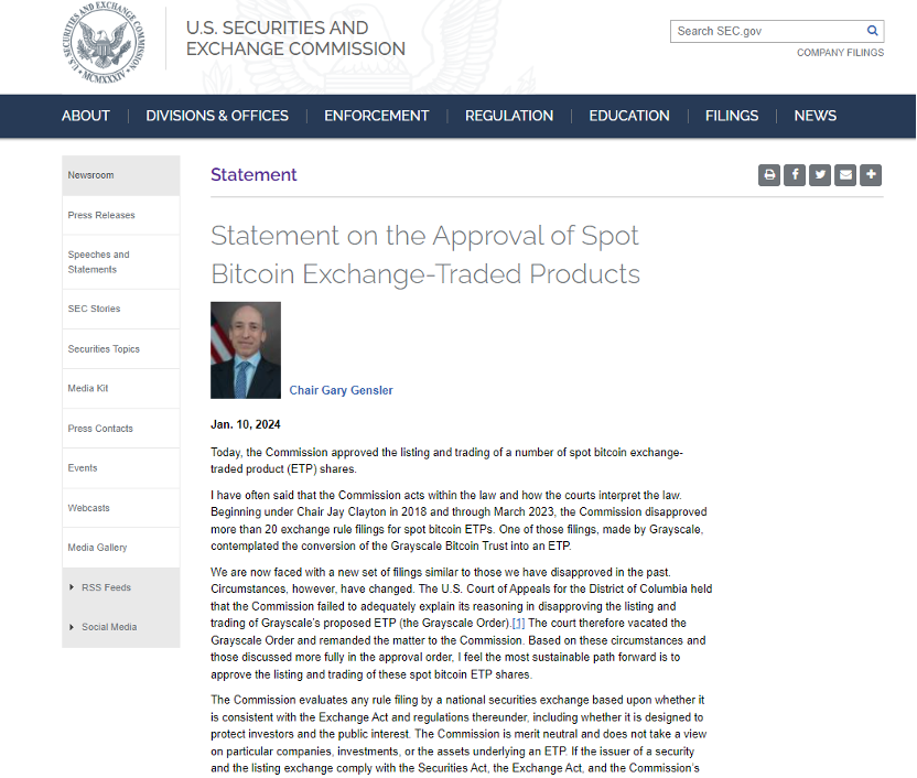 ![]() In the early morning of January 11, Beijing time, the U.S. Securities and Exchange Commission (SEC) announced that it had approved the listing and trading of spot Bitcoin ETFs through expedited mode and authorized 11 ETFs to begin trading on Thursday, local time. The SEC’s approval is actually a rare compromise. After the news was announced, the price of Bitcoin soared by more than $2,000, once again standing above the $47,000 mark. ![]() Prior to this, the price of Bitcoin once suffered a big plunge. On January 10, Beijing time, the largest intraday drop in Bitcoin price once exceeded 7%. According to CoinGlass data, as of the evening of that day, more than 75,000 investors had liquidated their positions in the cryptocurrency market across the entire network in 24 hours, with the total liquidation amount reaching US$280 million (approximately RMB 2 billion). The "trigger" for the sharp plunge in Bitcoin prices was the SEC's own mistake. On January 9, local time, the SEC announced on its official social media account X that it had approved the listing of spot Bitcoin ETFs. Subsequently, the Chairman of the SEC issued an urgent document clarifying that the SEC's account had been compromised and unauthorized content had been published. The Securities and Futures Commission has not yet approved the listing and trading of any spot Bitcoin ETFs. ![]() Official announcement in the early morning In the early morning of January 11, Beijing time, the U.S. Securities and Exchange Commission (SEC) approved Bitcoin spot ETFs for the first time in history, authorizing 11 ETFs to begin trading on Thursday. The SEC said it has approved the listing and trading of the spot Bitcoin ETF through expedited mode. Approved spot Bitcoin ETF issuers include: Grayscale, Bitwise, Hashdex, iShares, Valkyrie, Ark 21Shares, Invesco Galaxy, Vaneck, WisdomTre, Fidelity and Franklin. In addition, according to the latest notice posted on the Chicago Board Options Exchange (CBOE) website, spot Bitcoin ETFs from multiple issuers are scheduled to begin trading on Thursday local time. After the news was announced, the price of Bitcoin once soared by more than 2,000 US dollars, regaining its position above the 47,000 US dollars mark, with an intraday increase of 2.44%, recovering most of the previous day's decline. ![]() The approval of a Bitcoin spot ETF will allow investors to trade the digital currency in their traditional stock brokerage accounts rather than on those startup platforms. The cryptocurrency industry has endured a series of scandals and bankruptcies, with startups coming under increasing scrutiny. Cryptocurrency investors have been eagerly awaiting regulatory approval for a Bitcoin spot ETF, as it would make mainstream investors more comfortable with the digital currency. According to a report released by Standard Chartered Bank, if the relevant ETF is approved, it will greatly change the rules of the game for Bitcoin, allowing institutional and retail investors to invest in Bitcoin without directly holding Bitcoin. This year alone, it could attract $50 billion to $100 billion in funding and push the price of Bitcoin to $100,000. Other analysts believe inflows will be closer to $55 billion over the next five years. This approval by the US SEC is actually a rare compromise. The Bitcoin spot ETF was proposed as early as 2013. For 10 years since then, the current SEC Chairman Gary Gensler and his predecessor Jay Clayton have refused to allow the launch of such products, citing the violent fluctuations in Bitcoin prices, concerns about investor protection, and the possibility of market manipulation. On January 10, local time, Gensler issued a statement stating that although it approved the listing and trading of some Bitcoin spot ETFs, it did not recognize Bitcoin. Bitcoin is a speculative, volatile asset. The approval of Bitcoin spot ETF will bring more supervision. Since 2023, many financial institutions such as BlackRock and Fidelity have submitted applications for Bitcoin spot ETFs, attracting market attention. According to incomplete statistics, a total of 14 applicant institutions have held multiple meetings with the SEC to discuss the relevant details of the issuance of Bitcoin spot ETFs. It is worth mentioning that many Bitcoin ETF issuers are currently further reducing fees to attract investors, highlighting the fierce competition in this field. On January 9, local time, many investment institutions such as BlackRock, VanEck, and Invesco submitted new documents to the SEC, lowering the fee standards set for ETF products, and detailing the arrangements made by institutions and market makers to ensure the liquidity and efficiency of transactions. ![]() The U.S. Securities and Exchange Commission made a "big mistake"” In fact, on the eve of announcing the approval of the listing and trading of spot Bitcoin ETFs, the SEC made a "super big mistake", which once caused a huge shock in the virtual market. In the early morning of January 10th, Beijing time, the price of Bitcoin rose instantly, once approaching US$47,900. However, just ten minutes later, the market situation suddenly changed, and the price of Bitcoin quickly plummeted by more than 2,000 US dollars, and then continued to fall. As of the evening of January 10, the price of Bitcoin fell below US$44,500, falling as low as US$44,352, with the largest intraday drop exceeding 7%. ![]() According to CoinGlass data, as of the evening of January 10th, Beijing time, more than 75,000 investors had liquidated their positions in the entire cryptocurrency market in 24 hours, and the total liquidation amount reached US$280 million (approximately RMB 2 billion). The "trigger" for the sharp plunge in Bitcoin prices was the big mistake made by the U.S. Securities and Exchange Commission. On January 9, local time, the SEC announced on its official social media After the news was released, the price of Bitcoin soared, once approaching $47,900, setting a new 