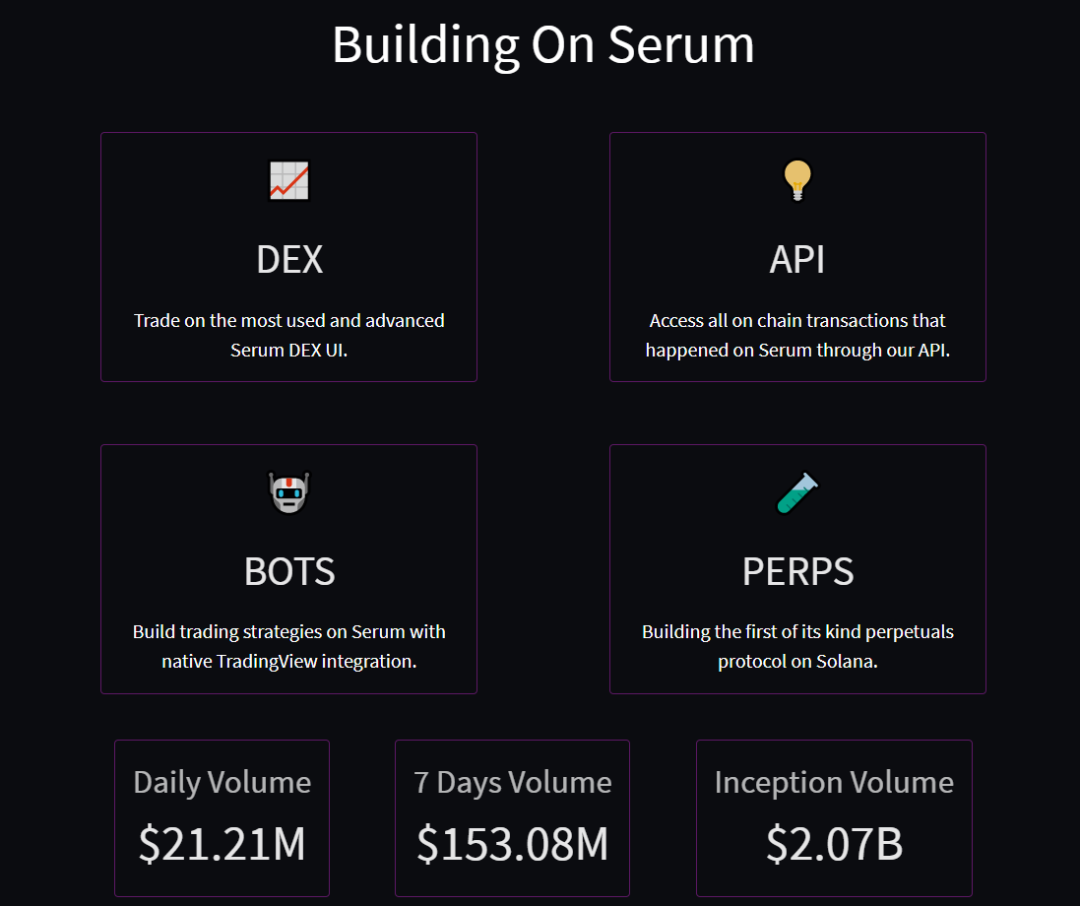 ![]() ![]() “Which products deserve more attention? Solana is a high-performance public chain founded at the end of 2017 by former engineers from Qualcomm, Intel and Dropbox. Solana is committed to building an Internet-level blockchain network. A major feature of Solana is its extremely high TPS, which can currently reach 50,000+. Solana's current ecological partners include Serum, Tether, USDc, Dfuse, Kin, Torus, Chainlink, Terra, Stardust, Arweave, Pocket, Audius and many other projects. In the current Solana ecosystem, there are both Tether, USDc, Chainlink, Terra, and other relatively mature products that have been developed in other ecosystems, as well as Solana native products such as Serum, Raydium, and Oxygen. The picture below is the ecological diagram recently announced by Solana officials. From the picture, we can see that there are quite a few projects in the current Solana ecosystem, but most of them are focused on infrastructure. In terms of applications, they are mainly external mature applications. There are still relatively few native applications based on Solana. Overall, the current infrastructure of the Solana ecosystem is not very complete, but it can already support the normal development of the Solana ecosystem. ![]() Solana has been quite popular recently, with constant actions within the ecosystem and attracting a lot of attention. This article briefly introduces some of the native products of the Solana ecosystem. Compared with mature external applications, native products in a new ecosystem often contain more opportunities, but of course there are also risks. 1.Serum Serum is a decentralized exchange and a DeFi protocol launched by Sam Bankman-Fried (SBF), the founder of FTX Exchange. Sam Bankman-Fried has a high reputation and potential in the industry, which also gives Serum its own aura. Serum is the core product within the Solana ecosystem. Currently, many protocols have been built around the Serum protocol, most of which are closely related to SBF. We can see that many products have been built based on the Serum protocol, and we can see that the ecosystem is beginning to take shape. ![]() ![]() Serum has two product forms: order book and AMM, and has the characteristics of both order book and AMM. ![]() It can be known from the roadmap that Serum will also launch margin and contract businesses. ![]() According to official data, the transaction volume during the period from April 2 to April 14 was US$200 million, and the single-day transaction volume was around US$16 million, ranking among the top fifteen DEXs on Ethereum. 2. Bonfida Bonfida is Serum’s “flagship front-end”, providing a better trading experience for DEX transactions. The services provided by Bonfida are as follows: ![]() In addition to providing Serum-based trading functions, Bonfida also provides Serum API, strategy platform, Serum data analysis and other functions. Bonfida is also the first front-end to provide users with data analysis on the Serum chain. From the picture above, Serum's trading volume in the past seven days has reached 150 million US dollars, and the daily trading volume has exceeded 20 million US dollars. Bonfida also shows Serum and Bonfida token data. ![]() Judging from the experience, Bonfida is indeed much easier to use than Serum's native product. ![]() Bonfida's strategy platform currently provides four or five strategies. Users can choose a strategy to deposit funds, and the platform will automatically execute the corresponding strategy. Currently, the amount of funds deposited on the platform is small, and the number of users is relatively small. According to official information, the platform will introduce KOL to provide users with richer strategies, and users can also create their own strategies based on the platform. ![]() Bonfida also released the first NFT trading platform Solible, which can trade digital collections on the Solana blockchain. It feels like it has no special features. ![]() 3. Raydium A special feature of Raydium is that it can provide on-chain liquidity to the order book, which means that Raydium users and liquidity pools can access the order flow and liquidity of the entire Serum ecosystem, and vice versa. In the future, Raydium anticipates using other liquidity provision models to take advantage of oracles and increase liquidity. Raydium's performance is still very good in terms of pool depth and transaction volume. Of course, the stimulation factor of mining is indispensable. ![]() ![]() Raydium's next step is to implement the IDO function. In addition, Raydium plans to combine several new lending protocols launched by Serum to enable Raydium to add margin trading functions. The Raydium roadmap is as follows: ![]() 4. Maps.me Maps.me is an offline map application that has accumulated 140 million users. Google Play shows that Maps.me has been downloaded more than 50 million times. As a map product, various peripheral services are provided within the program, such as reservations for hotels, restaurants, etc. Payment through a third-party payment platform requires higher handling fees, and large exchange losses will also occur during international travel. Maps.me recently completed $50 million in financing and issued a platform token. Maps.me is currently developing its own multi-chain wallet and will launch a DeFi ecosystem on this offline mobile map platform. One of the tokens supported by the multi-chain wallet is USDC, which is created based on Solana and enables instant payments, especially for travelers to remote areas that lack payment infrastructure. Maps.me will integrate DeFi income into the wallet to provide users with passive income, while attracting existing users by providing related services, and will provide users with more DeFi services in the future. ![]() ![]() The product that provides DeFi services for Maps.me in the early stages is Oxygen, which will be introduced next. 5. Oxygen Oxygen Protocol is a non-custod