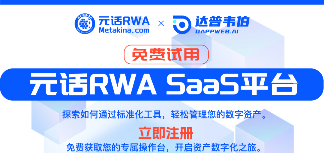 When "smart money" has begun to use real money to lay out the infrastructure for the next ten years, we should probably think about: How far away is this revolution driven by AI, blockchain and RWA? Quantum Solutions, has given its answer with action. #以太坊#ETH#上市公司#数字资产#香港Web3#RWA#区块链#企业金库#AIThe content of this article is technical discussion and industry analysis for reference only and "does not constitute any investment advice or financial service invitation." We firmly oppose any form of virtual currency speculation and are committed to empowering the real economy through technology. 【about Us】 Metakina RWA: RWA platform jointly developed by DAPPWEB LIMITED (Hong Kong) digital asset finance team and DAPPWEB (Xi'an) Web3 R&D team. Metakina.com focuses on Web3 solutions for tokenization of physical assets and is committed to creating a safe, efficient, and compliant digital asset trading and management service platform for all RWA participants. It aims to promote the deep integration of digital assets and the real economy and provide stable and reliable digital asset financial services to institutional investors. ![]() ![]() ![]() ![]() For RWA technology and business consultation, please contact us. ![]() ![]() Click "Read the original text" to try the Yuanhua rwaSaaS platform for free |