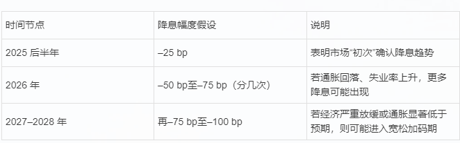 So we can give this stage a name: “The high turnover period after the bull market (pre-easing stage)” General direction: 🟢 Medium-term fluctuations, if there is no room for interest rate cuts in the future, it may be at the end of the bull market. Fluctuation: ⚠️ getting bigger Method: ❌ Not suitable for mindlessly taking full positions Suitable for: ✅ Do "sell high and buy low + keep core positions based on momentum and short cycles"” 2. Expectations of future interest rate easing in the United States![]() Okay, let’s do a qualitative + quantitative deduction together: what is the current pace of subsequent interest rate cuts by the Federal Reserve (Federal Reserve), and what is the possible downside to the 30-year U.S. Treasury bond yield (hereinafter referred to as the “30 Y yield”) if the rate cut is really implemented gradually. ----------------------------------------------------------------------- 🔍 Overview of current situation - The current 30 Y yield is about 4.6% (recent data is 4.58%) (fred.stlouisfed.org). - The Federal Reserve's policy interest rate (federal funds rate) remains at a high level, and although inflation has eased, core inflation remains highly sticky. - At the same time, although the market expects an interest rate cut, the "real interest rate cut cycle" has not yet fully started. - Long-term bond yields are not only affected by policy interest rates, but also by "inflation expectations + real interest rates + term premium". (fredblog.stlouisfed.org) -------------------------------------------------------------------------------- 📉 Assumptions about the pace of interest rate cuts We assume that the Federal Reserve will gradually start cutting interest rates in the future, based on the following possible paths: ![]() In other words, the policy interest rate may fall from the current assumption of ~5% (assumed value) to around ~3% or lower in the next 1-2 years. -------------------------------------------------------------------------------- 🧮 Quantitative deduction of the downside space of 30Y yield 30 Y yield ≈ expected average short-term interest rate + inflation expectation + term premium. We assume that during a rate cut cycle, all three move in a direction that favors falling yields. Hypothetical variables - Expected short-term interest rates average: currently assumed to be ~4.0%, falling to ~2.5% in the future. - Inflation expectations: currently assumed to be ~3.0%, falling to ~2.0% in the future. - Term premium: currently assumed to be ~0.5%, may fall to ~0.2% in the future. extrapolate If 30 Y yield = expected average short-term interest rate (2.5%) + inflation expectation (2.0%) + term premium (0.2%) ≈ 4.7%. It is currently ~4.6%–4.7%, which is actually close to the above-mentioned hypothetical state. But if the market further believes that inflation will fall to, say, 1.5%, real interest rates are expected to fall, and the term premium also falls further, then: - Expected average short-term interest rates: 2.0% - Inflation expectations: 1.5% - Term premium: 0.1% Total = 3.6%. Therefore, under a more optimistic scenario, the 30 Y yield could theoretically fall back to the 3.5%–4.0% range. -------------------------------------------------------------------------------- 📊 Downside summary - More conservative scenario: Yield drops from ~4.6% to ~4.0% → a decrease of approximately 60 bps. - Optimistic scenario (inflation + term premium declines rapidly): It is possible to drop to ~3.5% or even ~3.0%, but this path is more difficult because fiscal supply, inflation stickiness, and term premium are difficult to reduce quickly. - Note: If the economy performs strongly or fiscal supply becomes larger and the term premium continues to rise, yields may not go down or even rebound. The core reason why it is not the Q1 quarter of 2020-2021 is that the space for this round of interest rate cuts is restricted (completely different from the unlimited QE in 2020).3. Who is pushing and who is suppressing in the short cycle?You made a very important observation earlier: BTC has a small fluctuation cycle of about 16 days. This observation is valid. It is related to several things. Let’s take a look at them. 1. Driving force ①: “breathing” of derivatives positions”