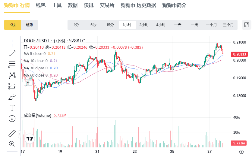 technical analysis The technical picture remains promising. Dogecoin maintained its ascending trendline from the $0.1949 base and successfully retested the $0.2060 to $0.2070 range, highlighting buyers’ continued control over the market. On the 4-hour chart, the RSI indicator is hovering around 58, consistent with the early stages of an uptrend ; The MACD indicator remains positive but narrowed, reflecting short-term consolidation after the breakout.