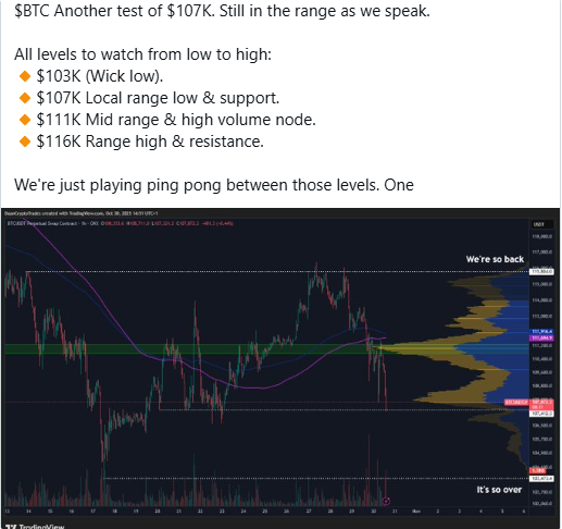 ![]() Bitcoin fell nearly 4% in October as ETF outflows ended in October, but Bollinger Bands BTC price volatility hit a record high. ![]() Key points: * Bitcoin posted its worst October performance since 2018, with traders cautious about the outlook. * ETF outflows returned as derivatives traders hedged against risks despite macro tailwinds. * Bollinger Bands data suggests that BTC price volatility is about to come back in full force. Bitcoin (BTC) Prices were trading around $110,000 on Saturday as traders remained bearish after "Uptober" failed to deliver. Bitcoin demand 'weak' ends Uptober Data from Cointelegraph Markets Pro shows that BTC price is regaining losses during Friday’s Wall Street trading session. This started with selling pressure – a common occurrence throughout the week – involving U.S. exchanges and spot Bitcoin exchange-traded funds (ETFs). On-chain analytics platform Glassnode said the ETF outflows highlighted "increased selling pressure from TradFi investors and renewed weakness in institutional demand." Data from UK-based investment firm Farside Investors showed outflows of $191 million on Friday, following Thursday's $488 million outflow. Glassnode went on to note that the market has dismissed macro positive factors such as the Federal Reserve rate cuts. The Fed delivered its expected rate cuts, but a hawkish tone in December has cooled optimism,” it told X followers. “The initial rally gradually faded as traders re-entered cautious mode, a shift clearly reflected in BTC’s options market. ” Traders are similarly cautious, with cryptocurrency investor and entrepreneur Ted Pillows calling Bitcoin's current setup a "time-based capitulation." “BTC’s time-based capitulation is happening now. But for that to happen, Bitcoin needs to consolidate above $100,000,” he warned on Friday. “A weekly close below this level would confirm a downtrend. ” ![]() Meanwhile, trader Daan Crypto Trades said that real movement will only occur when BTC price decisively breaks through the upper or lower limits of its local range. The two key interest levels are $107,000 and $116,000. ![]() Bollinger Bands Signal BTC Price Volatility Next As a result, October’s monthly candle saw BTC/USD drop a disappointing 3.7% – its worst result since 2018. As Cointelegraph reports, November is traditionally Bitcoin’s best month, with data from CoinGlass confirming that Bitcoin has gained an average of 42.5% since 2013. ![]() Discussing this topic, commentator Matthew Hyland added that the Bollinger Bands volatility indicator continues to suggest record volatility is on the way. “The monthly Bollinger Bands have reached the most extreme levels in Bitcoin’s entire history,” he wrote on X. Bollinger Band narrowing has long been a focus for market participants. ![]() Last month, the indicator’s creator, John Bollinger, said he would soon be “watching” the volatility of Bitcoin and major altcoins. Thank you for your attention and learn more about encryption! ! ! Recommended reading: Is ETH’s current decline a buying opportunity or a scam? NewGen will reach a purchase agreement with White Lion to acquire 600,000 Sol tokens BTC crashes after Fed rate cut, traders fall into "buy rumors, sell news" trap The market lowered expectations for an interest rate cut in December, and BTC prices fell further Ethereum LTH hits 3-month high amid October sell-off WLFI’s token will be listed on Binance US, will the price surge? |