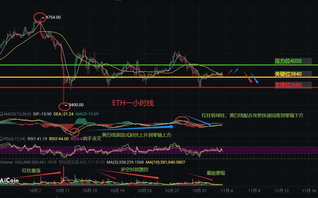 Friends, I am the key. I guess many people are thinking about the trend of ETH today - it can't fall even if it falls, and it can't rise even if it rises. Will it hit 3680, or rush to 3840 or even 4035? Don't worry, I'll help you sort it out. 1. Why is the market so "grinding" on Sunday? Have you ever noticed that ETH often "goes sideways" on weekends? The reason is simple: trading volume has shrunk, and both bulls and shorts are waiting and watching. If you look at the one-hour chart, the volume has shrunk significantly, and the price is testing back and forth around 3840, but no one dares to take the lead in smashing or pulling the market. At this time, it is most likely to have a "false breakthrough" and be washed out accidentally. Let’s look at the news again: ![]() In the past 24 hours, CEX has had a net outflow of 130,000 ETH, indicating that large investors are withdrawing coins, either to mortgage or to prepare to run. One address withdrew 20,000 ETH from Binance, probably to repay Aave's loan - this means that leverage is decreasing and market enthusiasm is receding. 2. Why am I bearish on the future market? ![]() Although ETH broke through the key level of 3840, the pressure above 4035 is very obvious. From a technical perspective: MACD is below the 0 axis. Although the white line is turning upward, the yellow line has not yet caught up, indicating that the rebound is not strong enough. The RSI is near 44, neither strong nor weak, and is an awkward position that can go up or down. The most important thing is that if 4035 does not break, the rebound will lure bulls. 3. What should retail investors do? Remember these two tricks 1. Don’t chase the high, wait until it comes back and step on it If ETH reaches around 4035 but fails to break through, you can test the short position with a short position, place the stop loss at 4050, and target 3840 → 3680. If it falls directly to 3680, don't rush to buy the bottom, wait until it stabilizes before taking action. 2. Look at quantity and follow the general trend Remember one sentence: "If the amount is not enough, don't force it." If the trading volume does not increase during the rebound, it is most likely a false rise. For example, yesterday's wave of gains caused the volume to shrink, but then it fell back again. 4. Are there any “big opportunities” in the future? In fact, ETH is now following a "triangular convergence". Once it breaks through, there will be a big market trend. Should it go up to 4100, or go down to 3600? The key depends on whether we can stand firm at 3840 tonight. Want to know the direction in advance? The key to paying attention, I will draw pictures and dismantle them in the village tonight to help you seize this wave of opportunities! Want to know where the specific pressure level is stuck? If the support level cannot be held, will it be directly broken through? Come to my "village" - the "Key" flag hangs at the entrance of the village. Go into the village and have a cup of tea. I will show you the real-time position on the plate and teach you step by step how to fish meat from the sea of blood! After all... fighting alone, it is better to follow the key and take a shortcut! #ETH |