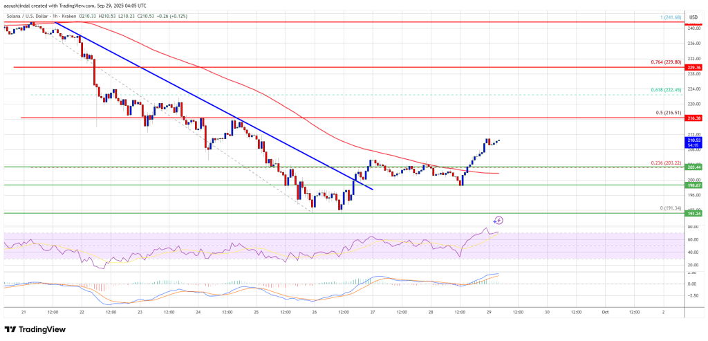 ![]() Solana started a new leg lower below $225. SOL price is currently trying to rebound from $192 and is facing resistance near $215.