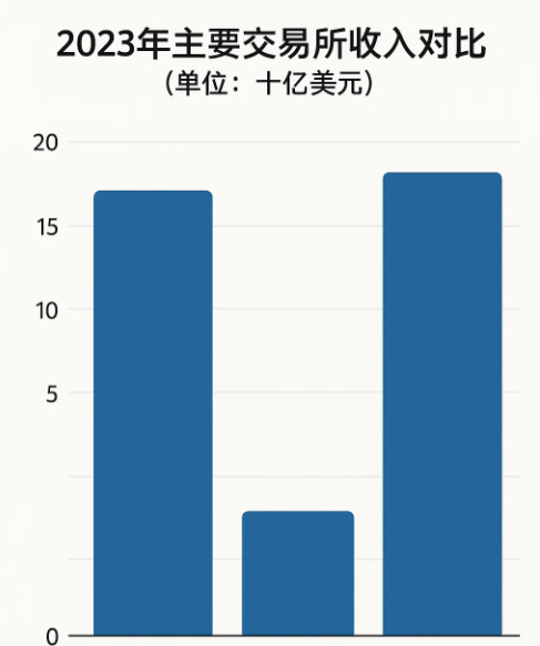 Column 3 Traditional financial exchanges (average level): about 18.5 B (combined annual revenue estimates of NYSE, CME, ICE, etc.)