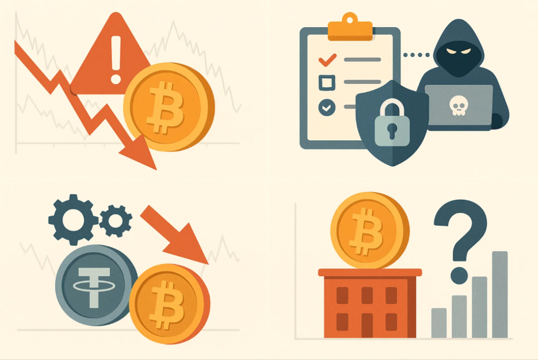 Compliance and security: regulatory uncertainty, hacker and counterparty risks, private key management risks;