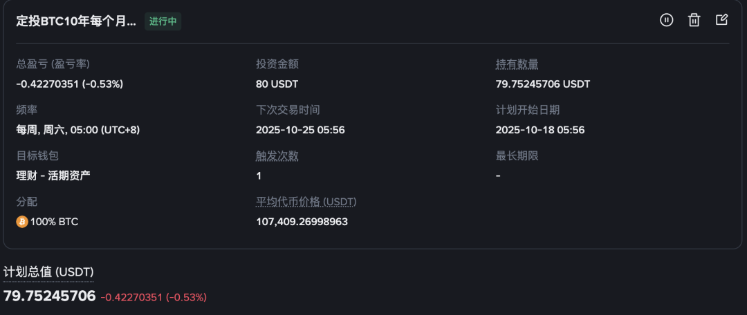 October 18, 2025 ![]() I’m also curious if I can hold on, so I’ll record it every Saturday from now on.; Fixed investment is automatic fixed investment through tools, no fancy technology, buy 80U every Saturday; Related reading: With $100,000 in BTC, is there still a chance to invest now? Disclaimer: Pictures and texts come from the Internet; This article is only for information sharing and does not promote or endorse any experience or investment. Readers are requested to strictly abide by all regional laws and regulations and not participate in any illegal financial activities. The content of this official account is prohibited from reprinting or copying without permission. Violators will be held legally responsible. ![]() |