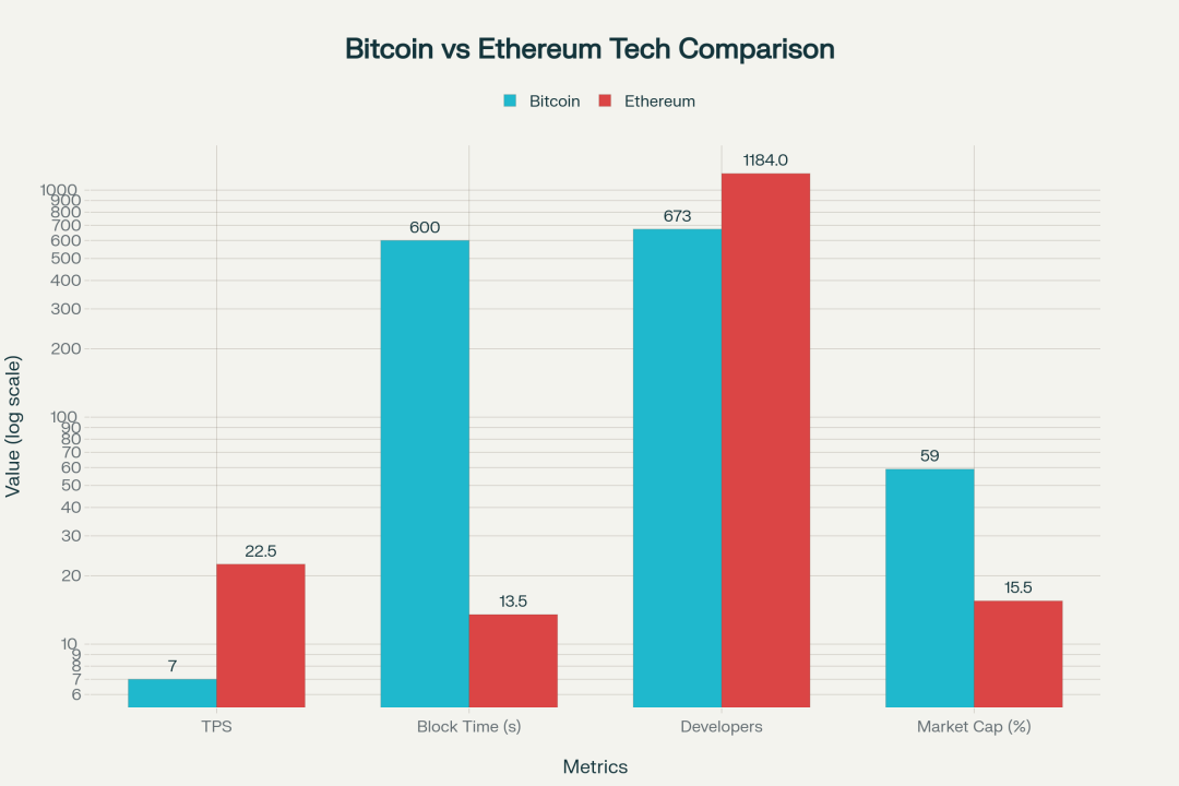 ![]() The cryptocurrency space is essentially defined by two different paradigms: Bitcoin’s vision of a sound digital currency and Ethereum’s programmable blockchain infrastructure. While both leverage distributed ledger technology, their different architectures, economic models, and philosophical underpinnings create completely different value propositions that shape the broader blockchain ecosystem. Bitcoin emerged in 2009 as a peer-to-peer electronic cash system designed to act as digital gold—a scarce, secure, and censorship-resistant store of value. Launched in 2015, Ethereum expanded beyond simple value transfer to create a “world computer” capable of executing complex programmable contracts and supporting diverse decentralized applications. This fundamental difference in purpose drives every aspect of their design, adoption patterns, and future trajectories. ![]() Architectural Philosophy and Design Principles Bitcoin’s Monetary Minimalism Bitcoin’s architecture embodies a monetary minimalist philosophy that prioritizes security, decentralization, and predictable monetary policy above all other factors. The network’s conservative development approach reflects Satoshi Nakamoto’s original vision to create an alternative to existing financial systems through digital scarcity. The Bitcoin protocol enforces a cap of 21 million coins through programmed halvings every four years, creating predictable deflationary pressure similar to precious metals. This scarcity mechanism, combined with a proof-of-work consensus mechanism that requires real-world energy expenditures, establishes Bitcoin as “unforgeable digital scarcity”—a property that cannot be replicated or diluted by a central authority. Bitcoin’s governance structure embodies radical decentralization, with no central authority able to unilaterally change the protocol. Changes require broad consensus among miners, node operators, developers, and users—an intentionally cumbersome process that prioritizes stability and immutability over rapid innovation. This conservative approach allows Bitcoin to maintain its core properties while building institutional trust as a store of value. Ethereum’s vision for programmable infrastructure Ethereum’s design philosophy focuses on creating a flexible, Turing-complete decentralized computing platform. Rather than optimizing for a single use case, Ethereum provides programmable infrastructure that enables thousands of different applications and protocols to thrive. The Ethereum Virtual Machine (EVM) acts as a decentralized computer that executes smart contracts – these are self-executing programs that automatically enforce the terms of an agreement without the need for an intermediary. This programmability enables complex financial instruments, autonomous organizations, and new economic models that are not possible with Bitcoin’s limited scripting language. Ethereum’s governance operates through a more centralized development process, with core developers and the Ethereum Foundation guiding protocol evolution through Ethereum Improvement Proposals (EIPs). This structure enables faster innovation and adaptability to changing market needs, although it introduces greater centralization risks compared to Bitcoin’s more distributed governance. ![]() Technical architecture and performance Transaction throughput and scalability Bitcoin’s base layer processes approximately 7 transactions per second (TPS) with 10-minute block intervals, deliberately optimizing security and decentralization over throughput. This conservative approach ensures that the network remains accessible to individual node operators while maintaining censorship resistance and immutability. Ethereum's base layer achieves 15-30 TPS with 12-15 second block times, providing faster finality, but still faces scalability constraints during periods of high demand. The complexity of the network enables complex applications but creates congestion when popular protocols generate high transaction volumes. Both address scalability through second-layer solutions, albeit in different ways. Bitcoin’s Lightning Network creates payment channels that enable instant, low-cost micropayments while retaining the conservative design of the base layer. Ethereum’s second-layer ecosystem includes multiple solutions such as Arbitrum, Optimism, and Polygon, each optimized for different use cases while inheriting Ethereum’s programmability. Consensus mechanism and energy efficiency Bitcoin continues to use proof-of-work consensus, requiring miners to expend computational energy to secure the network. Although energy intensive, this mechanism provides unparalleled security and enables true decentralization without relying on trusted validators or staking mechanisms. Ethereum will transition from Proof-of-Work to Proof-of-Stake in 2022 through "merging," reducing energy consumption by more than 99% while maintaining network security. This transition enables new economic models, including fee burning and staking rewards, fundamentally changing Ethereum’s monetary policy. The energy efficiency gained through proof-of-stake allows Ethereum to scale more sustainably while reducing the environmental concerns that have historically limited Bitcoin adoption in some areas. However, proof-of-stake introduces different trade-offs, including potential centralization around large validators and the need for complex slashing mechanisms. ![]() Economic Models and Monetary Policy Bitcoin’s Deflationary Store of Value Bitcoin implements a strict deflationary monetary policy, with a 21 million coin supply cap and a predictable issuance schedule. The 2024 halving further reduces new Bitcoin creation, pushing the stock-to-flow ratio above gold for the first time and reinforcing Bitcoin’s status as digital gold. This monetary policy creates strong incentives for long-term holding rather than spending, establishing Bitcoin as a premiu