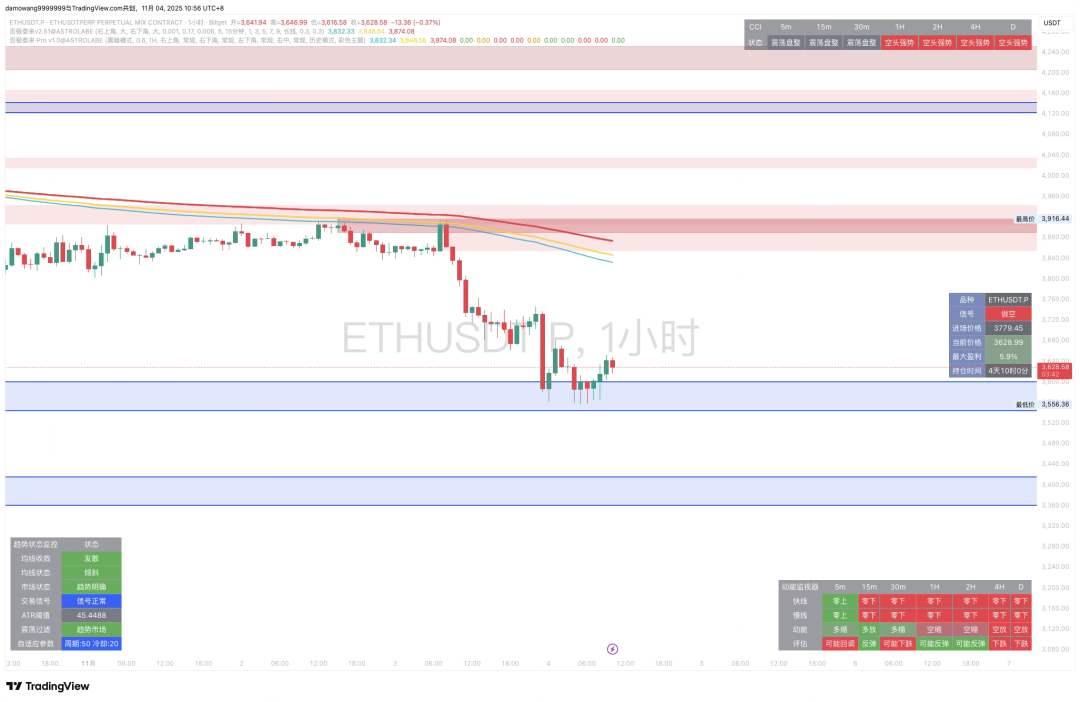 ![]() [For reference only, not as investment advice] 🎁Limited benefits🎁 「Short-term artifact · Fou Ji Tai Lai」 Exclusive self-developed Tradingview indicator Winning rate 80%+ Filter shocks and focus on market trends Re-enacting and restoring the real trading techniques of futures masters Original price¥6688 Open for a limited time for 7 days Free licensing experience Only [100] users who add assistants Once the quota is exhausted, the entrance will be closed immediately! Scan the code to get it now! 👇🏻 ![]() ![]() ETH Current price: $3648.90 ![]() Intraday analysis 1️⃣ Structural interpretation The current situation of ETH can be described as "a leak in the house is met with continuous rain". Not only did the price plummet by nearly 9%, falling below the key support of $3,600, the cumulative decline since the August high has reached approximately 25%, and the technical form is very ugly. ETH's technical and news aspects form a double blow, and its short-term structure is weaker than that of BTC. We need to pay attention to whether prices can stop falling as soon as possible and restore market confidence. 2️⃣ Capital flow & on-chain & exchange dynamics