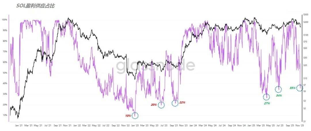 In the current market environment, players' attention is almost all focused on Bitcoin, which is reasonable: the direction of the market is unstable, and other assets cannot be immune. However, when recently collating data on the ETH and SOL chains, a signal emerged that deserves re-examination - SOL's valuation may be entering a structural opportunity range. 01|The cost of key chips has been penetrated, and a rare signal appears ![]() (Picture 1) On-chain data shows that SOL medium-sized whales, which have been the most active in the past two years and have positions ranging from 10 to 1,000 pieces, are the first major forces to complete the opening of positions in this round of market conditions. The current average cost for this group is about $167. At the same time, the average exchange price of chips across the entire network is approximately $158. Yesterday's pullback sent prices directly below these two key averages. In the past two years, similar situations have not occurred many times in SOL, which has certain indicator significance. 02|The high-level chips are trapped, and the bottom cost is close to ![]() (Picture 2) Further observation from the chip structure shows that a large number of hold-up areas have accumulated above the current price, and institutional and treasury funds have entered the market around $185. More importantly, the current price is quite close to the initial position range of $144 for the main funds in this round. In other words, the first batch of bottom positions of the main force are approaching the no-loss price. 03|The proportion of profitable supply drops sharply, and market sentiment accelerates to cool down ![]() (Picture 3) Judging from the SOL Profitable Supply Proportion (PSIP) data, only about 35% were in profit yesterday, which means 65% of the chips were in loss. In the past few years, PSIP has only been below 20% during deep bear phases, and it has only been below 35% twice so far this cycle: April 7 and June 22. This means that the current sentiment, valuation and chip structure of SOL have entered the obvious "oversold zone". 04|Conclusion: It’s not a bargain hunting signal, but its value is outstanding This does not mean that SOL prices have bottomed out, but it does mean that the risk-reward ratio is beginning to tilt toward the bulls. As long as Bitcoin does not experience systemic risks and the market does not officially enter a bear market cycle, then from a long-term perspective, SOL is likely to become one of the most potential mainstream assets besides BTC.