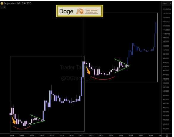 If you don’t know what to do in the bull market, you are welcome to scan the code to join the group for free. The spot code and layout strategy of the bull market can be shared for free. Welcome to private message me to join us Penguin number can be added: 3838974575![]() Dogecoin is exhibiting similar trends to its first full bull cycle, and if it were to mirror the bull run entirely, the meme coin’s price could soar to unprecedented heights. October is coming to an end and Dogecoin has fallen sharply. The Internet meme coin, the largest by market capitalization, has fallen 20% since the beginning of the month, in stark contrast to a 41% gain in October 2024, a 10% gain in October 2023, and a 105% surge in October 2022. ![]() 8-year-old Dogecoin pattern reborn Amid the generally bearish market sentiment, analyst Trader Tadrigrade noted similarities between the current price action and Dogecoin’s first bull cycle. He based this conclusion on an analysis of Dogecoin’s two-month chart. In particular, he noted that Dogecoin’s price action continued within a symmetrical triangle for more than a year before breaking out to unprecedented prices. This process occurred between January 2016 and February 2017, with a breakout of the triangle in March 2017. Following the breakout, Dogecoin price surged a staggering 6,366%, from $0.0003 to a high of $0.0194 in January 2018. Prior to the formation of the symmetrical triangle pattern, Dogecoin experienced a period of price downturn, which the analysts highlighted in red in the accompanying chart. Interestingly, similar consolidation occurred during the 2022 and 2023 bear markets, further strengthening the correlation between the two. ![]() Dogecoin entered its current triangle formation in late 2024 and has been developing within this structure ever since. Notably, prices are tightening and Dogecoin has filled the symmetrical triangle, sparking optimism that a breakout is imminent. goal after breakthrough Tardigrade believes this formation is bullish for Dogecoin and expects an explosive price increase following the breakout. Specifically, the chart suggests price could rise to around $3.90, in line with the first breakout target of 2018. As of press time, Dogecoin is trading at $0.18, and if the breakthrough is successful, the increase will reach 2066%. However, further gains for Dogecoin (DOGE) are still possible. The chart shows that its price could soar to the ambitious $48 price target. If the circulating supply remains at 151.57 billion coins, a 26566% increase would bring Dogecoin's market value to $7.27 trillion, but this is somewhat unrealistic for an Internet meme coin. However, this isn’t the first time bold predictions for Dogecoin’s price have emerged in recent times. JezzaBTC said last month that Dogecoin prices could rise to $18, citing a recurring pattern in the coin’s charts. He believes that this increase will make many holders rich, but this is still extremely unlikely. If you don’t know what to do in the bull market, you are welcome to scan the code to join the group for free. The spot code and layout strategy of the bull market can be shared for free. Welcome to private message me to join us Penguin number can be added: 3838974575![]() |