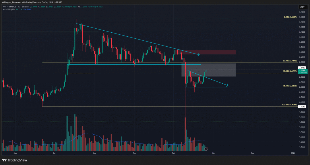 Ripple (XRP) has risen by about 11.4% in the past four days. One of the main drivers of this rise is the continued hoarding of coins by whales. The price broke above the key technical resistance level at $2.5, turning the short-term market sentiment decidedly bullish. ![]() AMBCrypto’s latest report points out that the $2.5 to $2.77 range is an important resistance zone that bulls must conquer. The price is currently testing the stage high of $2.64. If it can successfully break through, the chance of rebounding to above $2.77 will be greatly improved. Under this trend, XRP's short-term price target is expected to hit $3 this week. At the same time, Bitcoin (BTC) has also exceeded $112,000, which is a strong boost to the overall market sentiment and further consolidates bullish expectations. Open interest returns to May lows, hinting at rebound potential ![]() PelinayPA, an analyst at CryptoQuant Insights, pointed out in a report that XRP’s total open interest is currently just under $550 million, which is similar to the level in May. The market crash on October 10th led to a massive deleveraging that almost wiped out highly leveraged positions and laid the foundation for a new upward trend. Analysts believe that this situation often occurs in the early stages of a trend reversal. Open interest is currently recovering, and spot buying has increased significantly, giving XRP the opportunity to hit the $3 supply range. The analyst also added that if buying continues to be strong, the price could even reach $4.5 further. ![]() Demand strengthens, buying volume increases, and bullish signals are gradually confirmed The recent bid/ask ratio is clearly skewed towards the buyers, which is a positive sign. Since May, whenever this has happened, XRP has tended to experience strong gains. Since August, the price has fallen back to the $2.8-3 range several times, accompanied by an increase in buy orders, which shows that the market has responded positively to this support area and has strong bullish intentions. Additionally, there was a significant increase in buying volume as XRP broke through local resistance at $2.55. According to CryptoQuant data, open interest grew from $550 million to $590 million in 24 hours, indicating a renewed flow of funds into the market. Cautiously bullish, key resistance has not yet been fully digested Although the overall trend is bullish, analysts caution that bulls still need to remain calm. XRP is still weak on the daily structure. Although the short-term market is optimistic, it still needs to break through a higher resistance zone to completely reverse the situation. Next, the $2.8–3 supply zone will be key in determining the direction of the next move. If it can steadily break through and stand above this range, XRP is expected to enter a new upward cycle ; Otherwise, it may still fluctuate within the range. The Bitcoin bull market has entered the second half, and the community has opened limited-time benefits and distributed selected potential coins for free. Scan the QR code or search WeChat ID: BNB7768 to add an assistant and join the group layout immediately. ![]() |