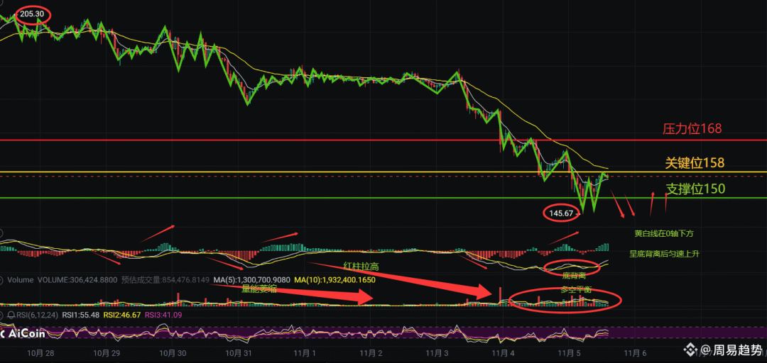 Looking at the RSI indicators, RSI1:53.94, RSI2:46.12, RSI3:40.85, all are in the weak range below 50, indicating that market sentiment is still bearish. In terms of volume and energy, we should be more vigilant - the red column is rising, but the trading volume MA is only 1.26 million, which is significantly smaller than the MA of 1.91 million. This is a typical "infinite rebound", and the reliability is greatly reduced. My judgment and action suggestions: In the short term, SOL may rebound to near the key level of 158, but it will be extremely difficult to break through 168. What is more likely is that after oscillating in the 150-158 range, it will continue to test the strong support of 145 downwards. Why is my judgment still bearish in the medium to long term?