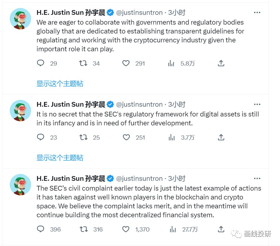 Overnight, the Federal Reserve raised interest rates by 25 basis points as expected, ignoring the plight of the banking industry. In the view of Powell and other Federal Reserve officials, combating inflation is a top priority and primary responsibility, and lowering the inflation rate to the 2% baseline is the first goal. At the press conference, Federal Reserve Chairman Powell ruled out the possibility of an interest rate cut this year, and there will be at least one 25 basis point interest rate hike during the year. Judging from the dot plot, the interest rate cut cycle is expected to start next year. This diverged from market expectations, and all three major U.S. stock indexes closed down. ![]() Source: TigerBroker Sister Yan believes that investors need to continue to observe the lagging impact on the U.S. macroeconomics after consecutive sharp interest rate hikes. Coupled with the European and American banking incidents, short-term market confidence is insufficient, which may lead to increased market volatility. At the same time, we must also be wary of similar bankruptcies of small and medium-sized banks. However, judging from the wording of last night's statement, the window for the Fed's interest rate hike cycle may soon close, meaning that it is now close to the end of the rate hike. Today, the Shanghai and Shenzhen stock markets fluctuated and closed higher, with chip computing power, gold 6G and other sectors leading the gains.; ChatGPT concept stocks continue to explode, and iFlytek hits the daily limit. Since the beginning of this year, the income of GPT-related equity funds has continued to rise. According to the Choice concept stock index, the index has increased by 58.69% since the beginning of this year, while the Shanghai and Shenzhen 300 has increased by only 5.29%. ![]() Source: Choice According to Choice data, the industry distribution of the ChatGPT index concept compiled by Oriental Fortune is mainly composed of 19 companies in computer software (iFlytek, 360, etc.), 5 companies in marketing services (Threesome, etc.), and 5 companies in Internet services (Haitian Ruisheng, Kunlun Wanwei, etc.). Covering upstream, midstream and downstream manufacturers covering the AIGC concept. ![]() Industry distribution of Dongcai ChatGPT concept index constituent stocks, source: Choice Thanks to ChatGPT, the stock price of NVIDIA, founded by Jen-Hsun Huang, known as the "Godfather of AI," has surged astonishingly this year. Its market value has reached US$659.5 billion, making it the sixth-largest company in the world by market value, surpassing Musk's Tesla and Warren Buffett's Berkshire Hathaway in one fell swoop. Obviously, ChatGPT has started an "arms race" in AI, and NVIDIA is the far ahead leader in this race. Jen-Hsun Huang said yesterday that generative artificial intelligence will reshape almost all industries. Sister Yan believes that after the United States has continuously raised interest rates sharply, the global economy is showing signs of slowing down, and coupled with the thunderstorms in the European and American banking industries, short-term market confidence is still insufficient. The main investment focus is still to look for equity funds that value high quality and have high corporate profit visibility. Another sector worthy of attention is gold. Affected by factors such as the collapse of the European and American banking industries, continued geopolitical tensions, and the gloomy global economic outlook, the price of gold continued to rise this month, once exceeding US$2,000 per ounce during the session. As gold stocks have risen sharply, 13 gold ETF-linked products have all recorded positive returns this year, with returns above 5%. ![]() Cartography: Draw Lines and Invest in ResearchAmong them, Cathay Gold ETF, CCB Shanghai Gold ETF, Huaan Gold ETF, E Fund Gold ETF and Bosera Gold ETF ranked among the top five with a highest yield of 5.81%. Compared with other funds, gold ETFs are much smaller in size. The largest in the chart above is Huaan Gold ETF, which is 1.295 billion yuan, and the smallest is Harvest Shanghai Gold ETF, which is only 12.41 million yuan. After the collapse of FTX, something happened again in the currency circle! “Sun Ge smiled, life or death was unpredictable; Sun Ge was in trouble, and everyone praised him. ” ![]() Source: Zhihu This is a short joke made by retail investors on the Internet to ridicule Justin Sun, the founder of the cryptocurrency platform Tron. Recently, Justin Sun, who is known as the "King of Hype" and is the most controversial one, has gotten into trouble. On March 22, the U.S. Securities and Exchange Commission (SEC) filed a complaint with the Manhattan District Court in New York, accusing Justin Sun and his related foundations of illegal sales of securities, fraud and market manipulation. The SEC stated in its press release that they are filing a complaint with the court against Justin Sun, the Tron Foundation, the BitTorrent Foundation, and BitTorrent (now known as Rainberry) for selling tokens such as tronix (TRX) and BitTorrent (BTT). The SEC believes that these are unregistered crypto asset securities, and further accuses Justin Sun of fraudulently manipulating the secondary market of TRX. The charges allege that Justin Sun tried to artificially increase TRX trading volume through false transactions. He asked his employees to conduct more than 600,000 TRX false transactions between the two crypto asset trading platform accounts he controlled. Approximately 4.5 million to 7.4 million TRX were traded through these virtual transactions every day. All TRX used in illegal transactions was provided by Justin Sun himself. His series of operations generated $31 million in illegal profits at the expense of other investors. In addition to Justin Sun himself, the SEC also charged eight social celebrities for allegedly participating in TRX and BTT promotions, inducing investors to buy TRX and BTT tokens, and c