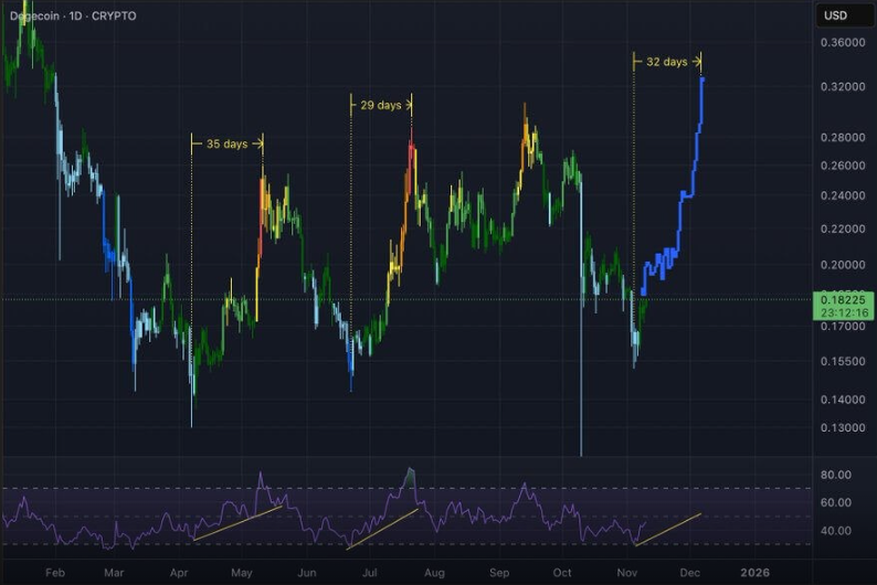 ![]() The "rising diffusion wedge" technical form currently displayed by Dogecoin shows strong upward momentum. This pattern continues to consolidate against the background of stable trading volume and complete structure, with the target resistance level expected to reach the $1.50 level before the end of 2025. The price has repeatedly rebounded from the lower trend line, showing strong resilience. In line with the steady growth of market value and cyclical recovery signals, the overall trend remains optimistic. What is Dogecoin’s rising diffusion wedge? This pattern appears on the biweekly chart as two spreading upward trend lines with price fluctuating between them. Although volatility has increased, the upward momentum behind it remains solid. Since its formation in mid-2023, this structure has continued to be verified, with the price testing the lower track multiple times and then rebounding upward. This pattern is expected to continue until 2025. Analysts believe that its stability is an important basis for judging long-term performance. Why is the market structure so strong? According to analysis by trader Tardigrade, the price trend of Dogecoin is highly consistent with the expansion boundary of the rising wedge. Each pullback has found support on the lower track and then moved upward again. The pattern has continued from mid-2023 to the end of 2025, continuously hitting higher highs and lows, with a complete structure. Multiple support rebounds in history have further verified the reliability of this model. The current trading price of Dogecoin is $0.1828, with a 24-hour increase of 4.9%, and the trading range is $0.1727 – $0.1831. ![]() According to data, its market capitalization reaches US$27.66 billion, its trading volume is US$1.93 billion, and its circulating supply is 151.67 billion coins, firmly ranking among the top ten cryptocurrencies. This solid structure shows that if the upward momentum continues, the next key resistance is expected to be $1.50, continuing the long-term upward trend from 2023 to 2026. The formation of a wedge pattern highlights the cyclical nature of the market, with each uptick continuing to build upon the previous high while following an ever-widening channel trajectory. The continued existence of this form also reflects the market's stable interest and participation in the Dogecoin ecosystem. Short-term recovery signals on daily chart Judging from the daily chart, Dogecoin has recently experienced three rising cycles, namely 35 days, 29 days and 32 days. Each cycle experienced rise and consolidation before starting again. ChandlerCharts analysis points out that these rhythms show clear cyclical momentum, and the RSI indicator remains in the 40-70 range, supporting the current recovery pattern. Is $0.30 around the corner? Yes, Dogecoin is gradually approaching the $0.30 mark. The price has recently jumped from $0.17 in the earlier cycle to over $0.32. Analysts pointed out that as long as the market structure remains intact and trading volume remains stable before November 2025, this goal is expected to be achieved ahead of schedule. Continued rebound and increased volatility will be the key driving forces. ![]() 📈 Summary of core points 1. The wedge structure is complete: Since 2023, the rising diffusion wedge has continued to be effective, and the lower track support is reliable; 2. Strong cyclical momentum: The recent 29-35-day rising cycle shows strong recovery momentum, supporting the $1.50 target; 3. Volume and price are stable: current price is $0.1828, market value is $27.66 billion, transaction volume is $1.93 billion, and breakthrough demand can be confirmed. The rising wedge shape of Dogecoin continues to release signals of momentum and structural stability. The key support level drives the price to continue to rebound, and trading volume also supports its move towards the resistance level of $1.50. As trading patterns stabilize before the end of 2025, investors can pay close attention to the pace of cyclical recovery and capture participation opportunities. Keeping up with these developments will help you navigate the rapidly changing crypto market. The opportunity is fleeting, thank you for your attention! 👇 Don’t let the trap of air coins swallow up your principal, Tudou will take you to enjoy the entire bull market! If you are interested, you can go to the homepage and read the pinned article! Or +V: TGMM03 |