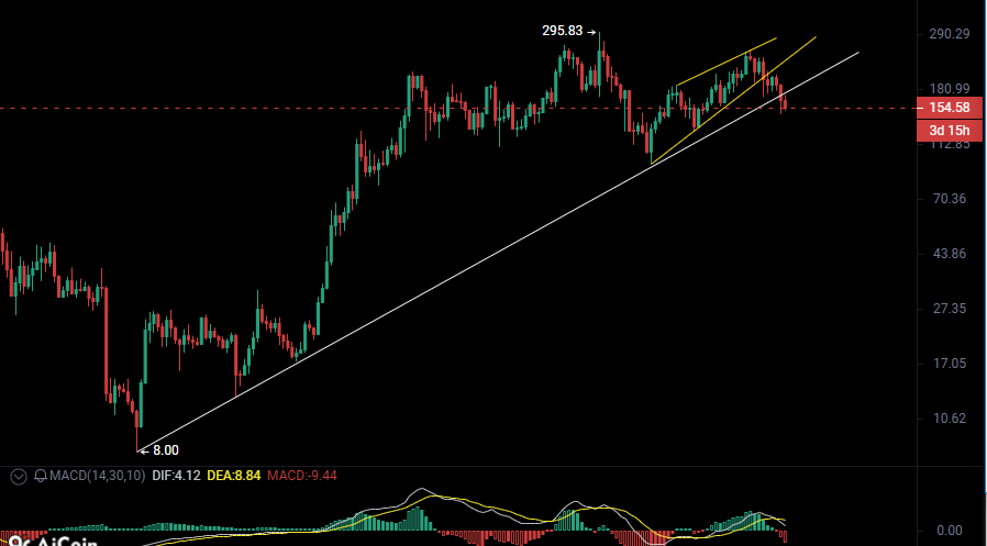 Weak water 3,000 only take a scoop Good morning! I am Xiaobei. SOL is known as the killer of Ethereum, with the advantages of high performance and low fees, huge transaction volume, and its number of daily active addresses has long been at the forefront of public chains. Ecology is the strongest support for fundamentals, such as: DeFi ecology, including decentralized exchanges (Raydium, Orca). NFT and social, meme coins, etc. However, SOL has had two downtime security incidents in its history. This is an unchangeable history. The FTX bankruptcy estate holds billions of dollars in SOL, and the liquidation plan poses continued potential selling pressure on the market. Today we take a look at SOL’s weekly chart: ![]() 1. It falls below the long-term upward trend line. The left side of the upward trend line is a bull market and the right side is a bear market. Of course, it will not fall sharply immediately. There is also a buffer period in the middle. 2. From the bottom of 8 US dollars to the highest point of 295 US dollars, it has increased 36 times. The space is adequate. 3. It took 749 days to rise from the bottom to the top, and the time was also consistent. 4. It fluctuated at the top for 357 days after March 11, 2024, and the market makers had enough time to ship. 5. The closing lines formed a double top pattern on November 18, 2024, and January 13, 2025. The amplitude of breaking the previous high was relatively small, and both tops were V-shaped reversals. 6. The neckline is at 176 US dollars, which entered the bearish downward attack stage and fell below on February 17, 2025. This is where the shorts can increase their volume. 7. After entering the downward trend, it formed a wedge shape from 4.7 to 10.6, and fell below the lower line on 10.6. A drop below the lower line was a confirmation signal, and the wedge shape maintained the original trend. 8. The high and low points are gradually moving downward. 9. The weekly line has no stop signal yet. 10. MACD is above the zero axis, forming a dead cross nearby. Comprehensive analysis: SOL is unlikely to break the previous high. It is currently in a downward trend and has not yet stopped falling. Technical analysis is only about doing things with high probability, not 100%. There are a lot of retail investors holding sol in the market now, and many people are currently trapped. My analysis definitely goes against the public expectations in the market. If you have any opinions, please leave a message in the comment area. It is a pleasure to study and learn together. Welcome to add V to communicate, ![]() |