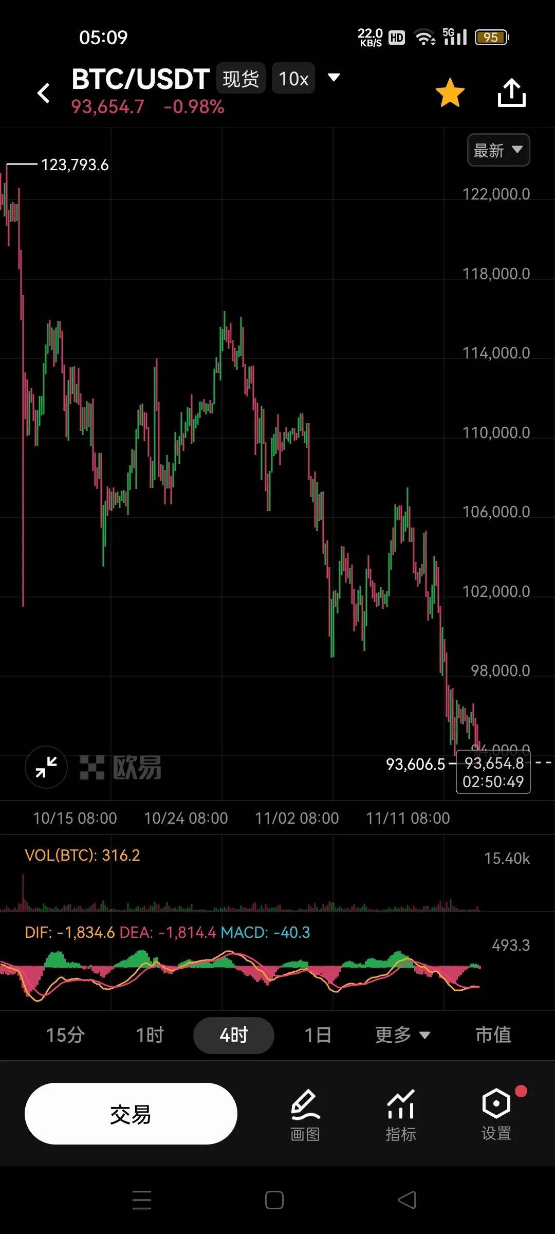BTC market analysis on November 17, 2025 The current BTC price is 93,654.7 USDT, which has dropped approximately 24% from the previous high (123,793.6), and is in a short-term downward trend + near the key support level: 1. Technical (4-hour chart): - The price fell below the previous shock range (100,000-110,000), and is currently testing the key support of 93,000-94,000 (coinciding with the cost support/historical transaction area predicted by the agency); - The MACD indicator shows that DIF < DEA and MACD is negative. The short momentum is still there, but the green column is slightly shortened, and there is a possibility of a weak rebound.; - The trading volume did not increase significantly, indicating that the selling pressure slowed down in stages, but buying orders did not enter the market on a large scale. 2. Market sentiment and funding: - Over 100,000 people liquidated their positions in the past 24 hours, and short-term selling pressure weakened after the long stop-loss orders were released.; - Long-term holders and ETF funds continued to flow out, and institutions were cautious, but some dip signals appeared around 94,000. ![]() Operation suggestions Short term (1-3 days): - Opportunity to go long: If the price stabilizes in the range of 93,000-94,000 (such as a long lower shadow line and heavy volume rebound), you can try to go long with a light position, set the stop loss below 92,000, and target 96,000-98,000 (short-term resistance); - Short-selling opportunity: If it rebounds to the resistance zone of 98,000-100,000 and the momentum is insufficient, you can go short with a light position, set the stop loss above 100,500, and the target is around 95,000. Medium and long term (1-2 weeks): - 93,000-94,000 is a strong support + cost area. If this area stabilizes, spot stocks can be deployed in batches (control positions to avoid full positions); - If it effectively falls below 92,000, we need to be wary of the risk of further testing the 88,000-90,000 range and wait and see for the time being. Cryptocurrencies are extremely volatile. The following is only analysis and does not constitute investment advice. |