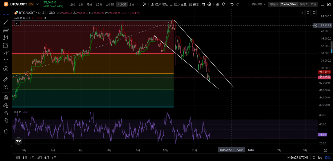 1) Market trend The broader market rose overall, with Dow, S&P 500 and Nasdaq futures rising. The Bitcoin spot ETF had a net outflow of US$1.11 billion last week, continuing three consecutive weeks of net outflows. The market value of the crypto market has evaporated by US$1.1 trillion in 41 days. Tom Lee: It is suspected that one or two market makers have a major "gap" in their balance sheets. ![]() Viewpoint: The correlation between Bitcoin and U.S. technology stocks has reached a new high since 2022, with the correlation reaching 0.54. Recent hot topics: Qian Zhimin, the main criminal in the 60,000 BTC money laundering case, bought the average price of 2,815 yuan. A hearing on the disposal of frozen assets involved in the case will be held tomorrow. 2) ALPHA information (1) The activity of the privacy network Zcash mainnet has increased significantly, and the average number of daily transactions has increased by more than 1,300% compared with before the currency price increased. ($ZEC) (2) There are only 4 protocols left in the entire DeFi ecosystem with a TVL (total locked volume) exceeding US$10 billion, namely: Aave (approximately $31.059 billion) Lido (approximately $26.481 billion) EigenLayer (approximately $12.656 billion) Binance staked ETH (BETH) (~$10.848 billion) (3) SOL treasury companies and ETFs hold more than 24.2 million SOLs, worth approximately US$3.43 billion. ($SOL) ![]() 3) BTC\ETH trend chart ![]() ![]() The picture above is the 4H trend chart. Indicator (1) uses the Fibonacci sequence, and each level (color) is a support or callback level. Indicator (2) Super trend, indicator on the right, below the trend chart, green represents an upward trend, and red represents a downward trend. Indicator (3) RSI, if it is close to 30% oversold, it may rebound and rise, if it is above 80%, it may fall back and fall. Indicator (4) draws its own line channel to determine whether it is out of trend. When trading on the right side, we usually look at the large-level cycles first, and then look for opportunities that match the large-level cycles from the small cycles. 4) Solana’s third quarter core of 2025 Solana has solid fundamentals and is still the leading general-purpose high-performance public chain. It is affected by the ebb of Meme in the short term, but its long-term competitiveness has not been shaken by new chains. 1. Technical advantages