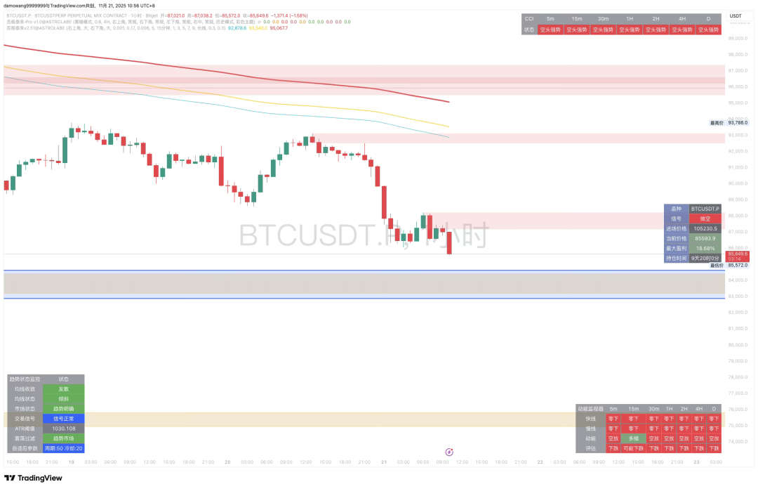 As the pie falls, our expected target is approaching. But whether it is possible to buy the bottom, my answer is not recommended. The target level is just the target level. It is currently impossible to confirm whether it is the bottom. Market confidence is on the verge of collapse, and BTC is currently facing multiple blows from "institutional withdrawal, whale selling, and bull leverage collapse." Liquidity is being withdrawn from the market, opening up a new period of vulnerability.