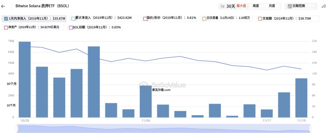 Solana's newly launched ETF continues to attract large inflows, but the weak market structure may further pressure Solana's price to $120. The spot Solana exchange-traded fund (ETF) continues to attract capital inflows despite a sharp retracement in currency prices. Since their launch, these products have accumulated net inflows of US$476 million and have maintained net inflows for 17 consecutive days, even though the price of Solana fell by nearly 30% from US$186 to US$130. Key information: