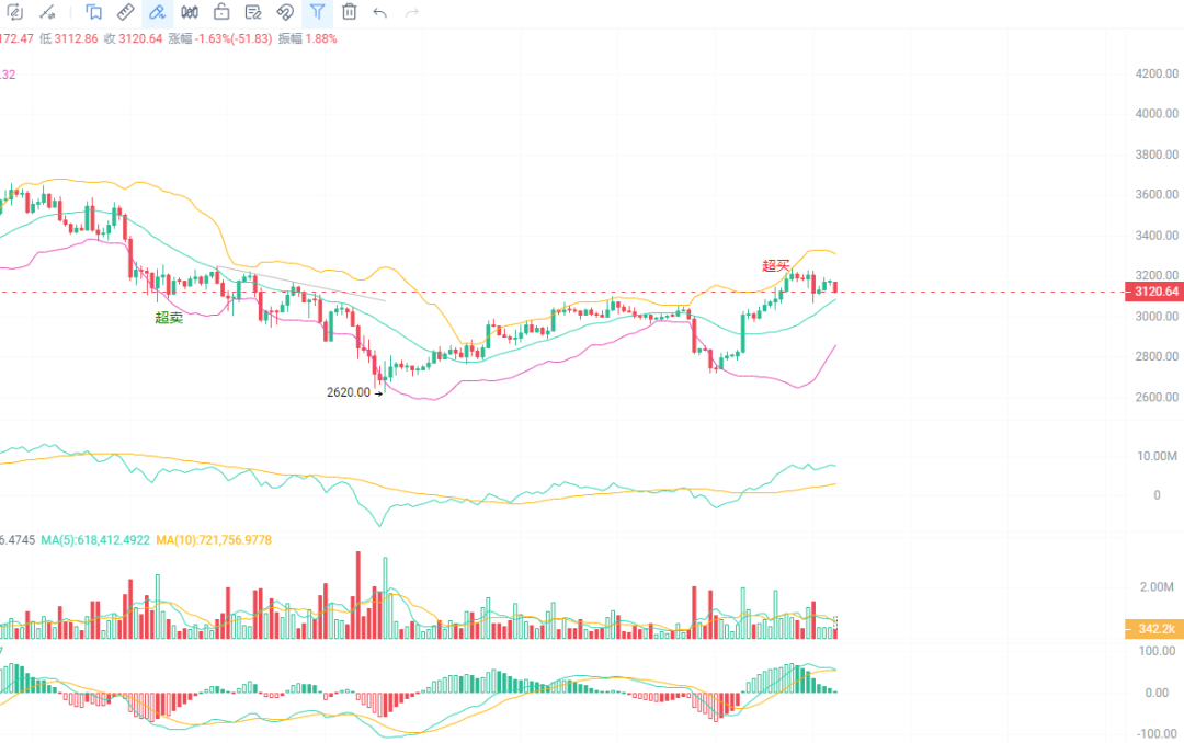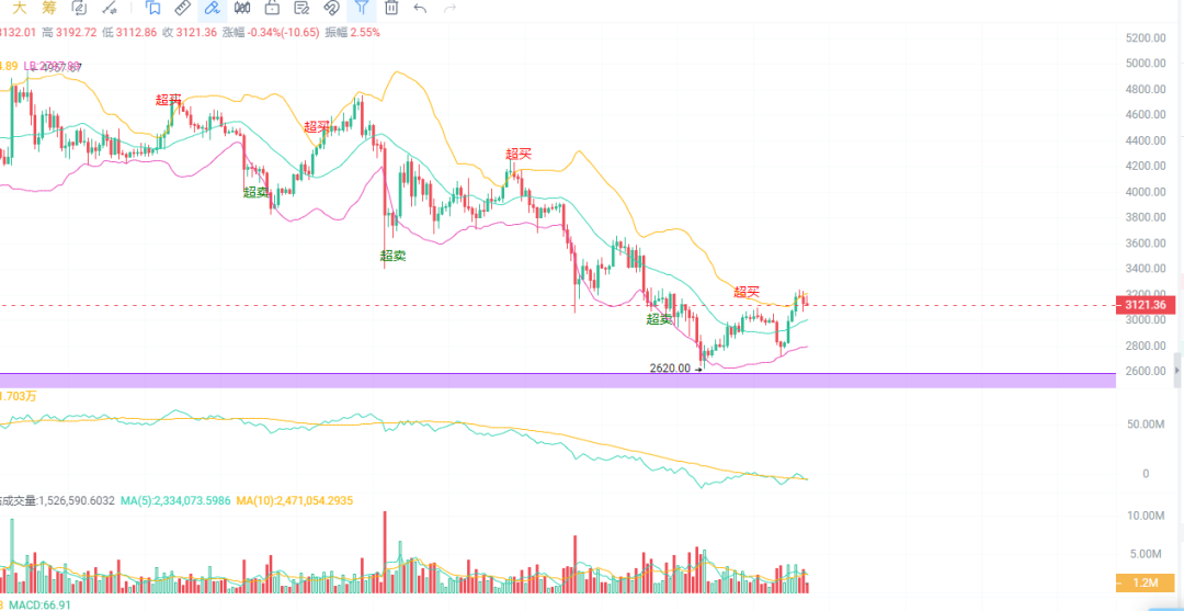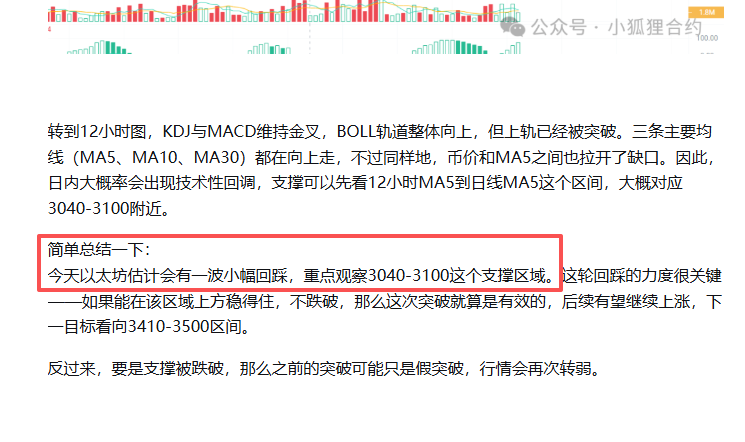 ![]() At the daily level, KDJ and MACD are still moving upward, but the BOLL band continues to narrow and move downward. In the main chart, MA5 and MA10 are oscillating upward, but MA30 is still pressing downward, and there is still a gap between the current price of ETH and the 5-day line, so in the short term, I think the technical correction has not been completed yet. The focus below is on the 3100-3040 range. ![]() In the 12-hour chart, KDJ and MACD are also slowly rising, and BOLL is a little open on the upper track, but the overall upward momentum is not strong - it is estimated that the market will slow down as the weekend approaches, and there is a high probability that it will be out of the shock range early next week, and then go unilaterally. Each moving average on the main chart is rising slightly, but the K line has closed its upper shadow line, indicating that the bulls are beginning to be unable to keep up. ![]() The 4-hour short-term is more obvious, KDJ bulls are shrinking, MACD is sticking to the high level and there are downward signs. Although BOLL is rising, the currency price has fallen back and is testing the middle track. Both MA5 and MA10 also turned to form suppression. It can be seen that the selling pressure at the 4-hour level is increasing, and it will continue to fluctuate downward during the day. To sum up: Today, the overall trend is still downward, with the first support looking at 3100-3040. Here is the key - if it is supported, it means that the breakthrough is effective, and the monthly line level gap will start to be filled later. The second target can be 3410-3500. ; If it cannot hold on, then it will continue to fall with heavy volume on the weekly line, and the next support will be the 2600-2500 range. ![]() In yesterday's analysis, it was mentioned that you should step back first, and those who follow this wave will also get a lot of meat. ![]() If you can't get results in the market for a long time, whether it's Xianshuo or Heyue, welcome to join us ![]() |