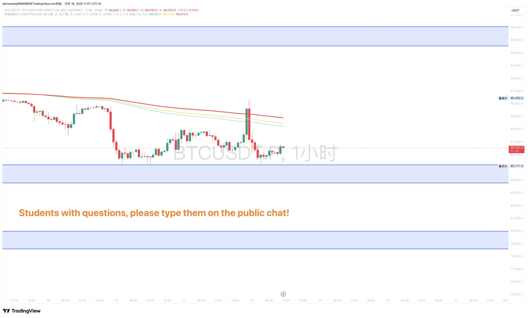 ![]() (Today’s market analysis) Today's market analysis 2025.12.18 ![]() BTC Current price: $86485.45 ![]() Intraday analysis 1️⃣ Structural interpretation The current price is testing the 85,000 area again. The current decline is driven by continued spot selling rather than high-leverage liquidation. This "slow bleeding" model is more difficult to reverse than a rapid decline. 84000 entity broke through, and the current maximum depth of decline is 77500. 2️⃣ Capital flow & on-chain & exchange dynamics