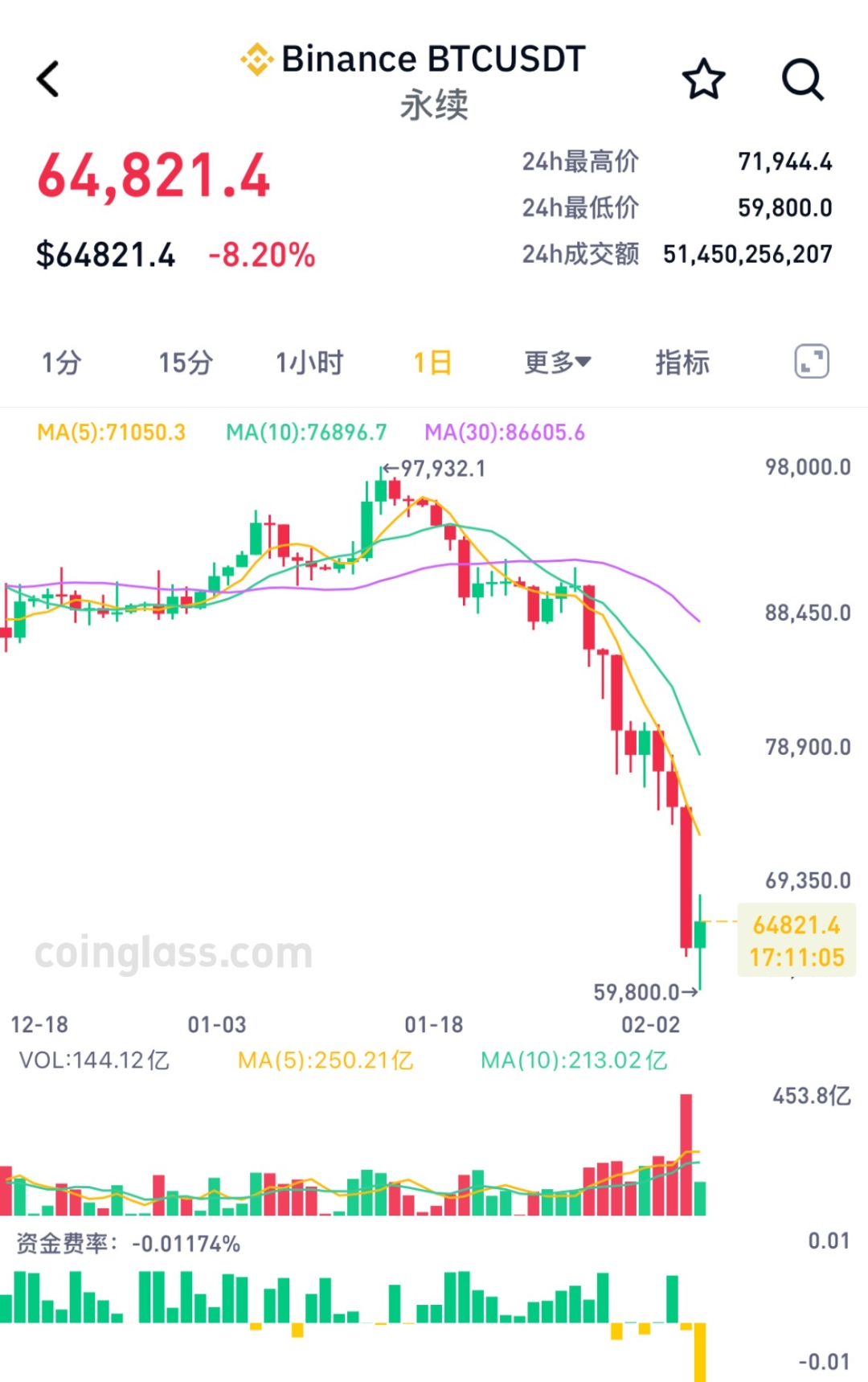 ![]() ![]() 570,000 people liquidated their positions, and 17.3 billion was wiped out. ![]() Produced | New Quotes Author | Song Hui Once upon a time, Bitcoin was called “"Machine to create wealth", but now, it has made many people miserable. February 6 , Bitcoin welcomes crash, intraday drop overtake8%,fell below The $65,000 mark has reached the lowest level59800Dollar. since last year Since reaching its peak in October, Bitcoin’s market value has fallen by nearly half. CoinGlass data shows that within 24 hours, more than 570,000 people liquidated their positions in the cryptocurrency market, and the total liquidation amount exceeded US$2.5 billion (approximately RMB 17.3 billion). “The Fear & Greed Index has reached 10, indicating that the market is in a state of "extreme fear". This storm was more violent than expected. ![]() Bitcoin has plummeted across the board, and its market value has been cut in half On Friday, the cryptocurrency market ushered in a storm. As of 17:00, Bitcoin fell more than 100% during the day. 8%, falling below the $65,000 mark. ![]() Image source: CoinGlass sinceSince hitting a record high of $126,223 in October 2025,Bitcoin this A round of decline has wiped out half of the market value。 at the same time, downtrend also spread arrive Other tokens, related exchange-traded funds, and public companies holding large amounts of Bitcoin , the cryptocurrency market fell across the board。as of pm At 17:00, Ethereum fell by more than 11% in 24 hours, XRP fell by more than 8%, SOL and Dogecoin fell by more than 11%, and BNB fell by more than 10%. ![]() Image source: CoinGlass Small, illiquid speculative tokens decline Even Because of the tragedy. The data shows, The MarketVector Digital Assets 100 Small Cap Index is down about 70% in the past year. Precious metals markets were also hit hard. Previously, spot silver once plummeted by more than 20%, and spot gold once fell by more than 4%. But today, gold and silver are back again. As of the afternoon, spot gold rose to Above US$4,885 per ounce, silver rose to above US$74 per ounce. Bitcoin’s sharp decline this time, yes The result of the resonance of multiple factors such as the macro environment, capital flows, trading mechanisms and market sentiment. On the one hand, large-scale redemptions from exchange-traded funds are one of the important drivers. China Business News revealed that this year In January, U.S. spot Bitcoin ETF outflows exceeded US$3 billion in a single month, after outflows of approximately US$7 billion and US$2 billion in November and December respectively. The wholesale withdrawal of institutional funds has resulted in a serious lack of market capacity. Although there was a brief reversal during the period, it was difficult to change the overall outflow trend, which further strengthened market sentiment and formed a vicious cycle. Deutsche Bank analysts believe that traditional investors’ interest in crypto assets is waning, and the market’s overall pessimism about cryptocurrencies is increasing。 On the other hand, the amplification effect of leveraged trading triggered a market stampede. CoinGlass data shows that in the past 24 hours, more than 570,000 people liquidated their positions in the cryptocurrency market. The Fear & Greed Index has reached 10, indicating that the market is in a state of "extreme fear". ![]() Image source: CoinGlass ![]() Image source: CoinGlass It is worth mentioning that what happened simultaneously with the state of the cryptocurrency market was that the U.S. technology sector, led by Microsoft, suffered heavy losses. ![]() Image source: wind So here comes the question. One is digital currency, and the other is the equity of a technology company. They cannot compete with each other. Why do they become birds in the same forest and fly together when disaster strikes? In fact, in the current market perception, Bitcoin is closer to a risk asset than a safe-haven asset such as gold. Similar to technology stocks, they are highly sensitive to changes in macro liquidity and interest rates. At the same time, the two also almost share similar investor groups. ——Institutional investors and risk-appetite investors. Data shows that the 30-day correlation coefficient between Bitcoin and the Nasdaq 100 Index has risen to 0.72, with significant synchronous fluctuations. Under this logic, when anxiety spreads, panic can easily spread to each other. On February 4, Alphabet, Google’s parent company, released its financial report. Annual revenue exceeded US$400 billion for the first time, reaching US$402.84 billion. Alphabet also disclosed that capital expenditures in 2026 may be as high as $185 billion, which is almost double the full-year expenditure in 2025. ![]() Image source: Alphabet Although the performance is improving, some investors are worried that future investment that exceeds expectations will be difficult to obtain matching returns in terms of business data. Since then, Alphabet’s stock price has fluctuated violently, with a flash crash after the market closed. 7%, and finally narrowed to a decline of about 2%. Not only Alphabet and the AI war are getting more intense. Many large technology companies have revealed in their financial reports that they are expected to expand investment in the field of artificial intelligence. These include Microsoft, local time On January 28, Microsoft announced its second quarter financial report for fiscal year 2026. In a follow-up conference call, it stated that capital expenditures for the quarter reached US$37.5 billion, a year-on-year surge of 66%. Microsoft also stated that it would continue to increase strategic investment in the AI field. Investors' concerns were directly reflected in the stock price. The next day, Microsoft's stock price plummeted by more than 10%, the market value evaporated by more than 357 billion U.S. dollars (approximately 2,481.2 billion yuan) in a single day, the largest single-day de