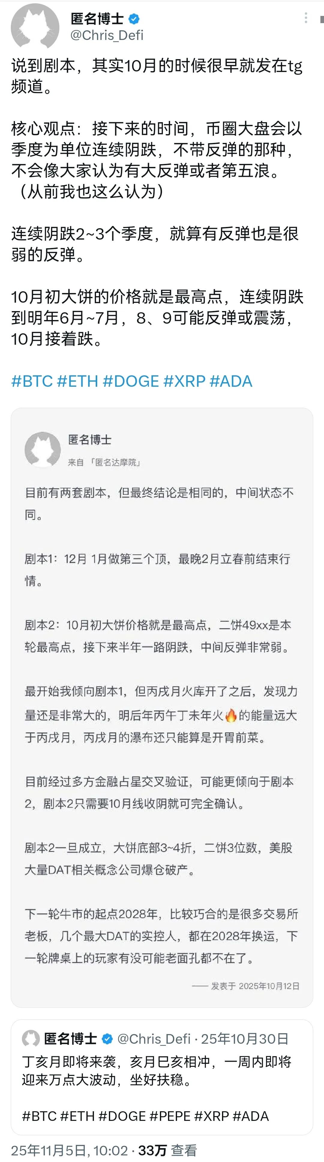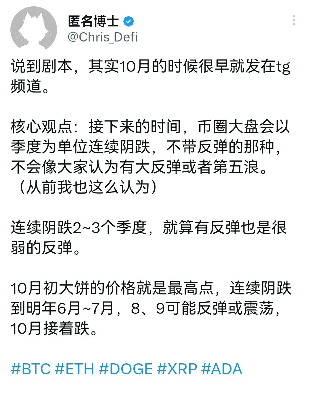Previous: Live broadcast preview at 19:30 tonight on Sunday, October 5th: Will the fat-tail market start to reach the top in the fourth quarter of 2025? Only sell or not buy? What should I do if it doesn’t rise? fil titan Will the fat-tail market begin to peak in the fourth quarter of 2025? Entering the stage of only selling but not buying, the higher the price, the more selling? Out in batches? What should I do if it doesn’t rise? October 5: How to sell? What to do if it doesn’t rise? What should I do if the price rises sharply after selling? No regrets! Out in batches! Time period as the basis for buying and selling! Boss: Eliminate in batches! Lay out a bear market! Believe in BTC! Everything else is just a cloud! Below the mining cost is the beginning of fixed investment! Prepare a good bear market cycle layout strategy! (summary) BTC fell after the weekly line broke, and the monthly line fell below the MA25 moving average! “The "super cycle" is difficult, you need to meet these three steps! Regardless of whether it's bull or bear [moving average strategy], it's easy to deal with it! Mining cost has reached! When to buy the dip? $75,000? $55,000? $20,000? BTC fell after the weekly line broke, and the monthly line fell below the MA25 moving average! “The "super cycle" is difficult, you need to meet these three steps! Regardless of whether it's bull or bear [moving average strategy], it's easy to deal with it! Mining cost has reached! When to buy the dip? $75,000? $55,000? $20,000? Bitcoin https://medium.com/@wrx370113192/btc%E5%91%A8%E7%BA%BF%E7%A0%B4%E4%BD%8D%E5%90%8E%E4%B8%8B%E8%B7%8C-%E6%9C%88%E7%BA%BF%E8%B7%8C%E7%A0%B4ma25%E5%9D%87%E7%BA%BF-%E8%B6%85%E7%BA%A7%E5%91%A8%E6%9C%9F-%E8%89%B0%E9%9A%BE-%E9%9C%80%E6%BB%A1%E8%B6%B3%E8%BF%99%E4%B8%89%E6%AD%A5-%E4%B8%8D%E7%AE%A1%E7%89%9B%E7%86%8A-%E5%9D%87%E7%BA%BF%E6%88%98%E6%B3%95-%E8%BD%BB%E6%9D%BE%E5%BA%94%E4%BB%98-%E5%B7%B2%E5%88%B0%E6%8C%96%E7%9F%BF%E6%88%90%E6%9C%AC-%E4%BD%95%E6%97%B6%E6%8A%84%E5%BA%95-7-5%E4%B8%87%E7%BE%8E%E5%85%83-5-5%E4%B8%87%E7%BE%8E%E5%85%83-2%E4%B8%87%E7%BE%8E%E5%85%83-%E6%AF%94%E7%89%B9%E5%B8%81-5039b950ddd7 Wolf Boy: The bear market cycle has just begun, and it’s still going down! Netizen: It’s not accurate to be bullish, but it’s easy to be bearish! Cloudflare traditional cloud has problems again! But FIL didn't respond! btc eth sol bnb fil sui doge xrp link… https://medium.com/@wrx370113192/%E7%8B%BC%E4%BB%94-%E7%86%8A%E5%B8%82%E5%91%A8%E6%9C%9F%E5%88%9A%E5%BC%80%E5%A7%8B%E4%B8%8D%E4%B9%85-%E8%BF%98%E6%9C%89%E5%BE%97%E8%B7%8C-%E7%BD%91%E5%8F%8B-%E7%9C%8B%E6%B6%A8%E4%B8%8D%E5%87%86-%E7%9C%8B%E8%B7%8C%E5%81%9A%E5%BE%97%E5%BE%88-cloudflare%E4%BC%A0%E7%BB%9F%E4%BA%91%E5%8F%88%E5%87%BA%E9%97%AE%E9%A2%98%E4%BA%86-%E4%BD%86fil%E6%B2%A1%E5%8F%8D%E5%BA%94-btc-eth-sol-bnb-fil-sui-doge-xrp-link-d1f8833264d6 Wolf Cub: The bear market has been running for 71 days! Big Shot: Holding cash is so uncomfortable! Wait until it falls to the right position before planning! “Binance Life" and other consumption markets, the 1011 crash accelerated the market bear market! Wrong time, wrong thing https://medium.com/@wrx370113192/%E7%8B%BC%E5%B4%BD-%E7%86%8A%E5%B8%82%E5%B7%B2%E8%BF%90%E8%A1%8C%E4%BA%8671%E5%A4%A9-%E5%A4%A7%E5%92%96-%E6%8B%BF%E7%9D%80%E7%8E%B0%E9%87%91%E7%9C%9F%E9%9A%BE%E5%8F%97-%E7%AD%89%E8%B7%8C%E5%88%B0%E4%BD%8D%E5%86%8D%E5%B8%83%E5%B1%80-%E5%B8%81%E5%AE%89%E4%BA%BA%E7%94%9F-%E7%AD%89%E6%B6%88%E8%80%97%E5%B8%82%E5%9C%BA-1011%E5%B4%A9%E7%9B%98%E5%8A%A0%E9%80%9F%E5%B8%82%E5%9C%BA%E7%86%8A%E5%B8%82-%E9%94%99%E7%9A%84%E6%97%B6%E9%97%B4%E9%94%99%E7%9A%84%E4%BA%8B-cdedf1672d46 Wolf Cub: The bear market has passed for 84 days, and there are still 280 days until the bull market! BTC micro-strategy bought again, and the holding cost was US$75,000 (Big Guy: Will it fall below? )! Is the privacy track still fermenting? 【detailed】 https://medium.com/@wrx370113192/%E7%8B%BC%E5%B4%BD-%E7%86%8A%E5%B8%82%E5%B7%B2%E8%BF%87%E5%8E%BB84%E5%A4%A9-%E8%BF%98%E6%9C%89280%E5%A4%A9%E5%B0%B1%E6%98%AF%E7%89%9B%E5%B8%82%E4%BA%86-btc%E5%BE%AE%E7%AD%96%E7%95%A5%E5%8F%88%E4%B9%B0-%E6%8C%81%E4%BB%93%E6%88%90%E6%9C%AC%E4%B8%BA7-5%E4%B8%87%E7%BE%8E%E5%85%83-%E5%A4%A7%E5%92%96-%E4%BC%9A%E8%B7%8C%E7%A0%B4-%E9%9A%90%E7%A7%81%E8%B5%9B%E9%81%93%E8%BF%98%E5%9C%A8%E5%8F%91%E9%85%B5-fdcc08701982 CZ: The crypto market may enter a “super cycle” and Bitcoin’s “four-year cycle” may no longer apply! It will still be a bull market in 2026! ? Big shot: I think the four-year cycle is still there, with 50,000 to 60,000 being the bottom https://medium.com/@wrx370113192/cz-%E5%8A%A0%E5%AF%86%E5%B8%82%E5%9C%BA%E6%88%96%E5%B0%86%E8%BF%9B%E5%85%A5-%E8%B6%85%E7%BA%A7%E5%91%A8%E6%9C%9F-%E6%AF%94%E7%89%B9%E5%B8%81-%E5%9B%9B%E5%B9%B4%E5%91%A8%E6%9C%9F-%E6%88%96%E4%B8%8D%E5%86%8D%E9%80%82%E7%94%A8-2026%E5%B9%B4%E4%BE%9D%E6%97%A7%E6%98%AF%E7%89%9B%E5%B8%82-%E5%A4%A7%E5%92%96-%E6%88%91%E8%AE%A4%E4%B8%BA%E5%9B%9B%E5%B9%B4%E5%91%A8%E6%9C%9F%E4%BB%8D%E5%9C%A8-5%E5%88%B06%E4%B8%87%E6%98%AF%E5%BA%95-00f9e869eb3c Video explanation of [Moving Average Strategy] for crossing bulls and bears No longer paying for "faith"! Never be trapped Video explanation of [Moving Average Strategy] for crossing bulls and bears No longer paying for "faith"! Never be trapped! btc https://medium.com/@wrx370113192/%E7%A9%BF%E8%B6%8A%E7%89%9B%E7%86%8A%E7%9A%84-%E5%9D%87%E7%BA%BF%E6%88%98%E6%B3%95-%E8%A7%86%E9%A2%91-%E8%AE%B2%E8%A7%A3-%E4%B8%8D%E5%86%8D%E4%B8%BA-%E4%BF%A1%E4%BB%B0-%E4%B9%B0%E5%8D%95-%E6%B0%B8%E4%B8%8D%E8%A2%AB%E5%A5%97-a1e5c7a1ba54 Witness the Bear Market: The "Three Rules" of Bear Markets! BTC micro-strategy MSTR has lost $2.1 billion! It’s hard for Binance to change its decline by buying another $100 million! btc eth sol bnb xrp and other losses The final shutdown price of BTC was around $40,000. Is this the bottom? Or as low as $20,000? When to buy the dip? layout? (The high point was 126,000 U on October 6, 2025) (Wolf Cub) The entire US BTC ETF has los