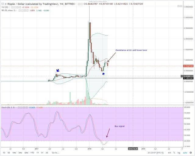 XRP 技术分析 在过去七天里,瑞波币下跌了20%。尽管瑞波币的未来前景很好,但短期内比较好的投资策略是:反弹后卖出。 周线图 ![]() 在一个月的长时间蓄力之后,在这个时间范围内都发生了随机买入信号。虽然统计数据显示,在过去的七天里,瑞波币下跌了20%,但我们倾向于坚持长期看涨,目前的价格下跌只是暂时的。 预计熊市过去后,瑞波币将会上涨超过1美元。目前的下跌目标是45美分。这样的话,将纠正2018年1月对其价格的过高估值。目前在月度图表中显示出普遍的看跌趋势。 日线图 ![]() 在5月12日之后的每日图表中,估值有一点点偏低。从1美元阻力位下跌30美分后,暂时净看跌的,价格可能在未来几天恢复至85美分。 如果没有的话,任何低于60美分的价格都将会引起恐慌抛盘,这意味着K线图趋于熊市。不管怎么说,在分析方面,短期看空。 MACD小时线 – MACD回到熊市区 RSI小时线 – RSI 目前在50以下 主支撑位 – 0.6900美元 主压力位 – 0.7500美元 文章内容仅供参考 您任何的投资行为,需自行承担全部责任 在此提醒您币市有风险,投资需谨慎 转载请注明出处 ![]() 资讯、行情、评测 长按二维码关注 |