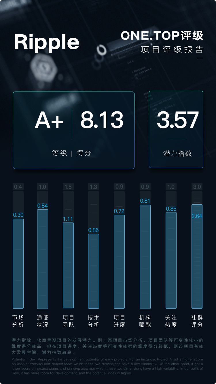 声明:本测评内容仅供参考,任何依本测评内容作出的投资行为,与本测评内容无关。项目有风险,投资需谨慎。 Statement: the contents of this assessment are for reference only. Any investment behavior made according to the contents of this assessment is not related to the contents of this assessment. The project is risky and the investment must be prudent. Ripple创建了一种几乎没有边际摩擦的全球支付、汇兑网络系统,基于区块链强大技术与功能将资金发送到全球各地。通过加入Ripple不断扩增的全球网络,金融机构可以在世界任何地方即时、可靠、经济有效地处理客户的支付。银行和支付提供商可以使用数字资产XRP进一步降低成本,从而更加便捷、容易的进入全新的市场。 瑞波币(XRP)是Ripple网络的基础货币,它可以在整个Ripple网络中流通,总数量为1000亿,并且随着交易的增多而逐渐减少,XRP的运营公司为Ripple Labs。其他货币如CNY、USD存在不能跨网关提现的弊端,但是XRP完全没有这方面的限制,其在Ripple系统内是通用的。 XRP和BTC一样都是基于数学和密码学的数字货币,但是相较而言,XRP的优势在于其在Ripple系统中有主要桥梁货币和有保障安全的功能,其中保障安全的功能是不可或缺的,这就要求参与这个协议的网关都必须持有少量XRP。 项目亮点 1、可扩展性:XRP每秒可以连续处理1500笔交易,全天候数据处理,甚至可以扩展到和Visa一样强大的交易处理能力。 2、高共识性:目前,RippleNet已经为遍布全球的100多家银行和支付机构提供强大网络服务,涉及国家超过了55个国家和地区。 3、技术稳定: XRP在稳定技术输出和跨境支付管理等方面的五年良好业绩证明,使其具备了为机构和企业提供高品质服务的实力。 项目风险 1、技术滞后风险:XRP目前的技术体系,有一定的领先优势,但是不言而喻的是,数字货币的技术发展与国际支付体系的搭建一直会迭代。所以对于技术的更迭与传导,既是机遇也是风险。 2、国际监管风险:鉴于Ripple项目的金融属性,以及其全球支付的分布广度。Ripple已经形成了不可小觑的跨境金融影响力,又因为金融一直都是影响世界经济的敏感行业之一,所以其所面临的国际化监管风险必然随其发展而升级。 据麦肯锡全球支付报告披露,2017年全球支付收入迅速膨胀到了1.9万亿美元,这是过去5年中增长最快的一年。同年全球数字商务交易额超过了3万亿美元,并且预计到2022年将增长一倍以上。据合理计算到2022年,全球支付收入年均增长9%,这意味着金融机构和其他金融服务公司可获得的净新增收入约为1万亿美元。 替代支付解决方案和电子商务的日益普及,进一步推动了全球数字化趋势的大飞跃。需要特别指出的是,关于国际支付业务,新兴市场,特别是亚太市场表现抢眼,亚太地区占全球交易总量几乎达到了三分之二。 分析 市场空间巨大,场景需求旺盛。 目前,全球支付与汇兑市场发展迅速且需求旺盛。然而,由于底层基础设施已过时且存在缺陷,以及制度差异与汇率的因素影响,因此全球跨境支付和国际汇款业务,一直以来都是困扰跨国企业和世界人民的难题。但是Ripple通过RippleNet连接银行系统、支付提供商和数字资产交易所,并且开放个人使用接入通道,从而搭建了一种几乎无摩擦的全球汇款体验场景与生态系统,最终实现与世界上任何国家之间的即时支付。 目前Ripple的竞争对手主要来自于两个维度,第一维度为传统的国际金融支付机构和IT金融科技巨头,比如SWIFT、蚂蚁金服等;第二个维度为基于加密货币与区块链技术的同业项目,比如恒星币(XLM)、OMG、BTC 、USDT等。 分析 竞争环境比较复杂,但目前优势比较突出。 Ripple目前不仅面临来自传统国际金融机构的竞争,同时也面临同业项目的竞争,但同业项目可以说是其面对的最大竞争压力。 作为数字加密货币,BTC全球共识性和价值体现更高,相较而言,Ripple的通证XRP具备更强的国际金融支付属性,有较强的实用场景做支撑。恒星币(XLM)是基于Ripple代码而创建,故其使用场景、技术模块、商业模式与Ripple极度相似,甚至其通证市值位居全球第四,可以说是紧随Ripple之后。但是恒星币(XLM)的项目启动时间为2013年,启动时机落后于Ripple,并且全球的共识体系也次于Ripple。总之,Ripple项目的先机优势和技术场景,将在未来一段时间内使其保持行业的领先地位。 通证名称:XRP 通证总量:1000亿 通证发行时间:2011年4月18日 通证上线交易所:94家 共识机制:RPCA (数据来自非小号) 分析 市场接受度高,整体表现良好。 相较而言,Ripple通证发行时间早,市场先机优势突出。目前上线交易所数量极多,且市场流通率达到了40%左右,由此可见其机构与个体接受度表现强劲。此外,据统计目前Ripple通证市值位居全球第二,仅次于BTC市值,展现了其良好的市场价值。 (1)资产数字化流通 RippleNet客户可以使用XRP来满足按需流动性,同时确保在交易的任何一方以本地货币发送和接收付款。 (2)银行使用场景 银行加入RippleNet,通过端到端跟踪和确定性实时处理跨境支付。银行可以将支付产品扩展到新的市场,否则这些市场太难或难以到达。 (3)支付服务商场景 为客户提供更快、更透明和可预测的支付服务,以满足世界各地的需求。 (4)场景交互介质——XRP XRP专为企业和机构场景流通使用而设计,通过其为银行和支付提供商提供了一种可靠的支付流动性的通用方式。 分析 基于模型与介质,场景化实现生态循