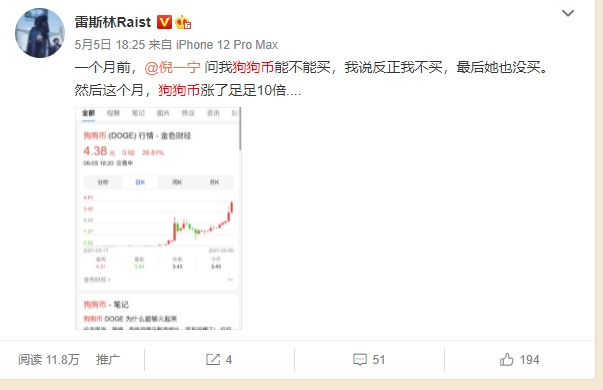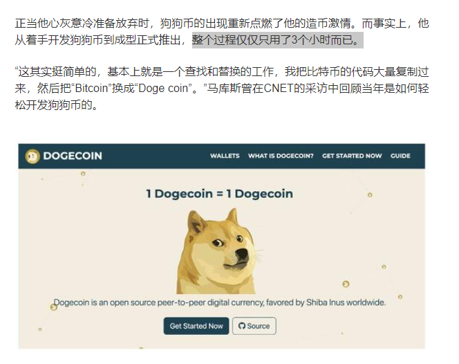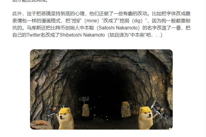 ![]() 01 虽然币圈一直很荒诞,但现在正在往越来越荒诞的方向走去。 (这一部分是对币圈的一些介绍,不想看的可以省略) 现在都听过比特币吧。 2011年5月8日的时候比特币还只要3.6美元一个,在之前价格更低的时候,甚至有程序员用几百个比特币去买一只披萨吃。 ![]() 然而那个程序员没想到的是,之后比特币价格飞涨,乃至于到了2021年,它的价格已经到达了近6万美元一个: ![]() 现在一个比特币不止能买披萨,甚至可以买一辆还不错的车。 十年涨了1.5万倍,平均每年涨1500倍,其疯狂程度远超债券、股票、房产、郁金香等任何人类历史上可以称之为“疯狂”的事物。 之前新闻说到,有阿姨2008年花5万买了一只股票然后忘记了,结果今年去销户的时候发现它已经500万了。 ![]() 但如果这阿姨买的是比特币并且忘记了账户,再去看时,可能就不是500万而是几十上百亿了。 这个回报率,足以让人疯狂。 即使有这么高的收益率,然而在很长一段时间里,很多投资者还是对它嗤之以鼻,主要因为它没有锚点。 炒房的人说:“大城市房价疯涨,背后折射的是国家经济高速发展,大城市土地资源稀缺,全中国人都想来北上广深,房价当然会永远涨。” “而炒币的有什么?” ![]() 炒股的人说:“股票背后都是有实打实的公司经营数据兜底的,背后是这些公司的经营状况。疫情期间大家无法出门,只能在家打游戏,所以腾讯会涨得好。你看,果然。” “而炒币的有什么?” ![]() 确实,在有大公司宣布购买虚拟货币之前,比特币就是一个完全的零和游戏。它背后没有任何价值挂靠,没有任何数据兜底,完全就看有多少新的资金进来。 所以那时候币圈人用一个概念来解释比特币的暴涨“比特币是去中心化的”,“而且它有上限。” 去中心化,就意味着比特币无法被监管,无法被追溯,所以它意味着自由,也就是各种黑钱的天堂。 而有上限,则意味着它不会像美元那样无限超发,不会因为各国政府疯狂印钱就通货膨胀,反正一共就2100万个,买完就没了。 某著名交易所在科普比特币的优势时,这样写道: ![]() 他们觉得“有上限”和“去中心化”是区块链货币暴涨的关键。 然后因为比特币的暴涨和成功,越来越多的有着奇形怪状名字的虚拟货币开始进入到市场里。反正它既没有监管也没有门槛,人人都能发币人人都能搞个币出来玩玩。 于是整个市场上的“虚拟火币”数以千计。 其中就有我们今天的主角,DOGE(狗狗)币和SHIBA(柴犬)币。 02 看这个k线图: ![]() 这是名为DOGE(狗狗)币在最近一段时间的走势图。 在2021年1月3日,它的价格还是0.008美元一个: ![]() 结果到了5月3日,它已经到了0.74美元一个了: ![]() 四个月翻了近100倍。 而且和早期比特币不同,那会儿根本没多少人知道虚拟货币,但狗狗币根本就是在众目睽睽之下涨到这么疯的。 乃至于一个月份的时候另一个博主问我狗狗币能不能买,我说看不懂的东西我不买,然后这一个月的时间,狗狗币就涨了十倍,让我非常愧疚.... ![]() 那么这个狗狗币到底是何方神圣,又有什么价值让它能涨成这样呢? 答案是没有价值,它完完全全就是币圈人口中的所谓“山寨币”。 它的货币形状,根本就是网上爆火的一个表情包: ![]() 它是无限发行的,现在市面上流通的有足足1000亿枚: ![]() 它的官网,根本就是一个大学生的习作,上面写着不明意义的话: ![]() 它甚至没有白皮书,有的只有一个充满了废话的介绍视频,里面详细介绍了你可以用狗狗币来买东西: ![]() 有人采访过狗狗币的创始人,其实他们当年完全是带着戏谑恶搞的心情发了这么一个币,所以才会用网络大热表情包做头像,然后写一大段废话,目的就是解构币圈的那一套“我们是有价值”的说法。 2013年,那时的互联网上有两个特别火爆的话题:一是此前寂寂无名比特币突然迎来了一个价格极速上涨的周期,在很短的时间内从几美元涨到了几十美元,让众人错愕不已。二是有个名为Doge meme的柴犬表情包风靡全网,大家纷纷转发这个狗头表示着“哇”“无语”“反讽”等种种难以言表的情绪。 这时,身在Adobe悉尼市场部的营销专员杰克逊帕尔默萌生了一个恶搞的想法:他决定把以狗头表情包来做一款数字货币,用以讽刺当时数字货币圈高涨的投机氛围。接着,他在Twitter上发了一条推文写道: ![]() 这想法吸引到了在IBM工作的软件工程师马库斯的注意,两人一拍即合,说干就干。直接把比特币的代码大段大段复制过来,然后把BITCOIN改成了Doge coin,然后狗狗币就设计完成了。 全程用了不过三个小时: ![]() 此外,出于把恶搞坚持到底的心理,他们还做了一些有趣的改动。比如把字体改成跟表情包一样的漫画格式,把“挖矿(mine)”改成了“挖洞(dig)”,因为狗一般都是刨坑的。 ![]() 可以看到这个“狗狗币”,完全就是作为讽刺虚拟火币的恶搞形式出现的,它的创始者估计也从没想过这东西是个真正的资产,只是觉得好玩。用他们自己的话来说,“这是一定会消失的一个玩笑”。 然而就这么一个好玩的东西,在新一轮的币圈狂潮中被推上了王座,而随着ELON MUSK一轮又一轮地在推特上喊单,表示看好狗狗币,狗狗币更是宛如坐上火箭,直接“fly to the moon": ![]() 截至昨天,狗狗币的市值已经超过800亿美元。要知道整个通用汽车的市值也才800亿美元,狗狗币的市值已经追上了美国最大的汽车制造商。 一个原意是讽刺比特币的山寨货币,反而成为众人追捧的对
