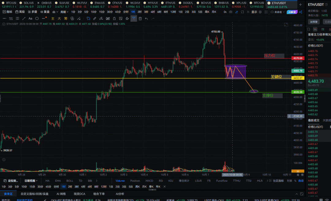各位老铁,我是你们的老朋友区块之钥。今早打开K线图,ETH这走势简直像极了暴风雨前的宁静——价格在4480美元附近反复揉搓,1小时图上的黄线(关键位4432美元)和绿线(支撑位4395美元)像两把刀悬在头顶,而红色压力位4570美元俨然成了短期难以逾越的“天花板”。 一、盘面暗藏玄机:缩量震荡背后是主力布局 从国庆假期至今,ETH上演了一出“过山车”剧情:先是暴力拉升至4755美元,随后被空头一闷棍砸回4400美元区间。眼下最值得玩味的是成交量持续萎缩——这说明大资金都在观望,散户们像无头苍蝇般来回割肉。老钥我翻遍凌晨消息面发现,今晚美国将公布CPI数据,美联储官员还要讲话,这俩“炸弹”足以让整个币圈抖三抖。 举个实战案例:昨天SOL、WLD等山寨币突然拉升,但ETH却跟涨乏力,这明显是资金在“拆东墙补西墙”。如果今晚BTC因为宏观数据剧烈波动,ETH很可能被连带“误伤”。 二、关键位置博弈:破位方向决定十月格局 当前价格卡在中间尴尬区,老钥的观点很明确: 若放量站稳4480美元:短期会试探4550-4600区间,但想冲前高4750必须有利好加持(比如以太坊ETF新进展或巨鲸抄底); 若跌破4395支撑:大概率会快速下探4350甚至4300美元,届时恐慌盘涌出,反而是中线布局机会。 兄弟们发现没?最近交易所ETH提现量骤增,说明聪明钱正在悄悄囤货。但普通散户往往被震荡洗下车——这就是为什么我反复强调“看大趋势忽略小波动”。 三、埋伏未来:这些信号正在暗示变盘 虽然表面风平浪静,但链上数据已露端倪: 巨鲸地址过去24小时增持12万ETH,成本线恰在4400美元附近; 期权市场看跌/看涨比率骤升,暗示专业投资者预期波动率放大; 山寨币轮动接近尾声,资金可能回流主流币(重点关注ETH/BTC汇率能否止跌)。 老钥敢拍胸脯说:未来72小时要么走出一根放量阳线确认反弹,要么跌破支撑位加速洗盘。但无论哪种走势,都是我们低位吸筹的机会——牛市里每次深蹲都是为了跳得更高! 如果你还看不清走势,那欢迎来之钥村里! 如果你也厌倦了被庄家收割,想第一时间抓住变盘信号,今天起关注区块之钥,每晚在村里我会分享巨鲸钱包监控数据+多空筹码分布图。 评论区扣“ETH策略”领止盈止损口诀表,明天,咱们揭秘如何从链上数据预判主力动向! ![]() |