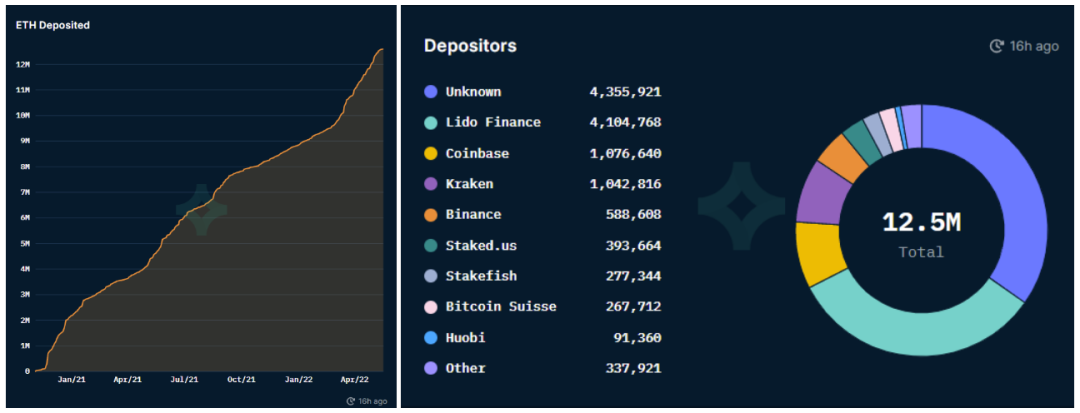 ![]() ![]() 这是白话区块链的第1647期原创 作者 | Terry 出品|白话区块链(ID:hellobtc) 以太坊2.0质押量超1260万枚,创历史新高:据5月16日报道,分析平台Nansen数据显示,以太坊2.0质押量已超1260万枚,占流通总量的10.4%,创历史新高。Lido平台以太坊质押量超410万枚,占以太坊2.0质押总量的32.5%,同样创历史新高。 而在3 月 26 日,以太坊核心开发者 Tim Beiko 总结了最新一次的核心开发者会议内容,包括合并测试网 Kiln 进展、难度炸弹、上海升级、以太坊执行层工作进展等等。 ![]() 4 月 13 日,以太坊合并领导人 Tim Beiko 在社交媒体上回应称:The Merge 并不会在6月完成,预计将在年内完成。这不仅意味着以太坊从 PoW 转 PoS 的真正转变,也意味着所谓的“以太坊 2.0”在加速掀开面纱。 01 什么是 The Merge? 就在今年 1 月,以太坊基金会宣布为了迎接合并,“以太坊 1.0”(ETH1)和“以太坊 2.0”(ETH2)的表述将被淘汰,取而代之的是“执行层”和“共识层”,毫无疑问,这是在为以太坊 2.0 的到来做最后规范意义上的字面准备。 ![]() 而 在2021 年 12 月初,Vitalik Buterin 发表题为「Endgame」(最后阶段)的文章,提出了所有区块链在未来将最终融合的观点,同时列出了允许区块验证以一种去中心化和抗审查的方式发生的工具。 简言之,目前以太坊的信标链与主网分开运行,虽然信标链使用 PoS 共识机制并行运行,但目前以太坊主网仍继续通过 PoW 共识机制得到保护。 而合并(The Merge)就是使这两个系统最终融合在一起——准备就绪后,以太坊主网将与信标链合并,主网将把运行智能合约的能力以及完整历史和当前状态引入 PoS 系统。 也即合并之后,现有的以太坊主网客户端 (“执行客户端”) 将继续托管以太坊虚拟机(EVM),并验证和广播交换,但将停止参与工作量证明(PoW)挖矿,并放弃对区块链链头 (顶端区块) 达成共识的责任。 相反,这种共识将成为“共识客户端”的责任,它负责把来自“执行客户端”的交换与共识所需的信息一起打包进“信标区块”中,这些信标区块就构成了信标链。“矿工”将被“验证者”(validators)取代,这些验证者需要将 ETH 存入某个以太坊智能合约中(也即质押): 验证者质押的 ETH 将作为抵押品,以激励他们正确地完成验证工作。不履行验证工作(比如因为离线)或进行恶意行为的验证者,将导致其质押的 ETH 的一部分被销毁。另一方面,如果验证者行为得当,那么将会获得 ETH 奖励。 这标志着以太坊 PoW 共识机制的结束,也意味着一旦合并发生,将由质押者来验证以太坊主网,整个以太坊网络不再需要 GPU 挖矿,之前的矿工可能会投入到新的 PoS 系统中。 02 The Merge 可能带来什么影响? 根据 ConsenSys 举办的信息会议,三名致力于合并技术的研究员认为以太坊主网与 PoS 信标链的合并将网络能源使用量减少了至少 99.95%。 而区块链由三部分组成:共识层、执行层和数据可用性层。合并是对共识层的升级,但 Gas fee 是付给执行层的。 这意味着 The Merge 将 PoW 共识改为 POS,PoW 链将不产出新的以太坊,新增的以太坊将只从 PoS 生产, 这将减少能源使用,但不会影响 Gas 成本。 而按照目前数据估算,以太坊在 The Merge 升级转向 PoS 机制之后,每年 PoS 新增的以太坊大约为 60 万枚,但按 2021 年以太坊转伦敦升级后的链上销毁数据显示,预计以太坊一年因 EIP-1559 所销毁的数量大约在 470 万枚左右。 这意味着从此以太坊的净销毁将大于净产出,为 -410 万枚,那结合目前以太坊约 1.2 亿枚的数量,以后每年以太坊不仅不会再增发,还会处于通缩状态: (0.6M POS - 4.7M burn)/118M = -3.5% 这无疑将从供给端对价格产生强烈支撑。同时随着 Eth2 的推进和伦敦升级的即将实施,面临销毁的预期,加之 PoS 需求,ETH 无疑将更加稀缺,这是对币价在需求层面最有力的提振。 与此同时,虽然目前质押的 APR 是 4.5 %左右,随着 ETH 质押总数的增多收益也会持续下降,但前不久 Web3 创业加速器 Alliance 核心贡献者 Jacob Franek 发推表示,Coinbase 预计 ETH 质押年化收益率(APR)将在合并(The Merge)后升至 9-12%。 ![]() 其实从这个角度看,质押至少32个 ETH 获取奖励的行为,可以简单类比是新形势下的“以太坊显卡挖矿”——每 32 个ETH都可以类比作一台矿机,质押生成的奖励就是挖矿产出。 03 以太坊质押赛道一览 不过参与以太坊质押之前,我们需要先明确以太坊质押中的一些独特机制设计,因为这直接关乎市面上目前我们可选的具体参与方式。 至少32个ETH。参与质押时向存款合约中存入至少 32 个ETH(或 32 的倍数),这对绝大部分用户无疑都是较高的资金门槛; Slash惩罚。Slash 惩罚是指质押节点不遵守协议(基本上围绕着技术运维层面)而受到惩罚,即从节点中质押的至少 32 枚 ETH 中扣款,如果节点由于 Slash 惩罚累积导致质押 ETH Token降至 16 枚以下,该节点就会自动从网络中退出; 以上可见,ETH 数额小无法参与、验证节点的技术门槛问题、质押Token的流动性问题,是参与质押需要直接关注的问题,而目前市面上针对性的 ETH staking 服务基本可以概括为“两大类四种模式”。 ![]()