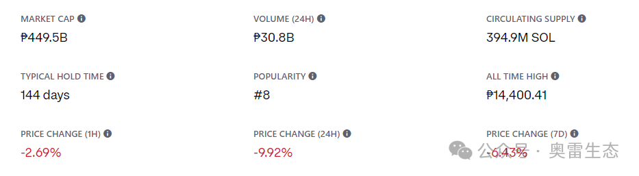 SOL 值多少钱?今天 Solana 的实时 价格 为 115.65 美元,24 小时交易量为 1,429,767,001 美元。我们实时更新 SOL 至美元的价格。Solana 在过去 24 小时内上涨了 1.67%。目前 CoinMarketCap 排名第 5,实时市值为 41,977,739,045 美元。它的流通量为 436,088,494 SOL 币,最大流通量为 436,088,494 枚 SOL 币。供应不可用。 Solana 价格分析:SOL 达到 115.65 美元