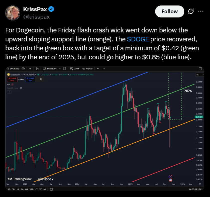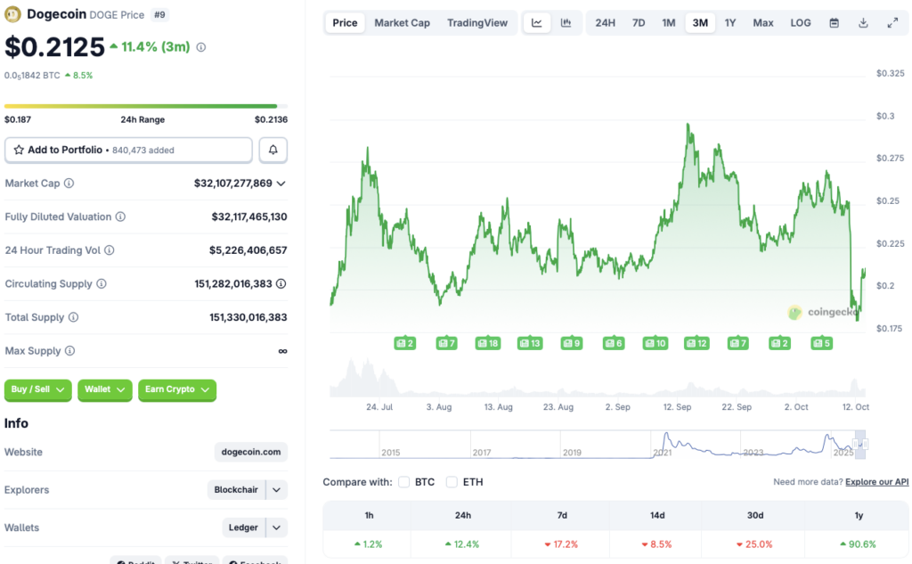 如果你一年前投资了狗狗币(DOGE),那么现在你的投资回报率几乎翻了一番。根据CoinGecko 的数据,自 2024 年 10 月以来,这枚最初的 memecoin 已上涨超过 90%,甚至超过了比特币(BTC)、以太坊(ETH) 和Solana (SOL) 等重量级货币。狗狗币再次证明了其社区力量、meme 魔力和主流知名度的结合,仍然能够撼动市场。 ![]() 狗狗币如何实现强势回归狗狗币的上涨并非偶然,而是其长期支持者埃隆·马斯克(Elon Musk)不断增长的采用率和持续炒作的结果。这位亿万富翁已将狗狗币支付功能集成到特斯拉(Tesla)和SpaceX的商品中,并且有传言称狗狗币可能会被添加到X即将推出的支付系统中。如果真的如此,这将标志着这种模因币(memecoin)朝着现实世界应用迈出了一大步。 除此之外,狗狗币继续受益于其市值最高的模因币地位,稳居加密货币前十名。其悠久的历史和文化关联性赋予了它其他新兴模因币难以复制的优势。 到 2026 年狗狗币能再次翻倍吗?如果比特币在明年保持看涨趋势,狗狗币可能会顺势而为,因为它经常反映比特币的市场走势。分析师认为,狗狗币还有可能再次大幅上涨——尤其是如果X支付集成成为现实,并且散户投资者重新涌入memecoins。 尽管如此,狗狗币仍然具有高度投机性。与其他模因资产一样,它既受社会情绪驱动,也受基本面因素影响。市场情绪或宏观环境的突然转变,可能导致价格暴跌,就像上涨一样迅速。不过,就目前而言,势头强劲——交易员们并没有忽视这一点。 ![]() 狗狗币再次证明,它绝非互联网上的一个笑话。它兼具主流曝光度、活跃的社区以及潜在的现实世界融合,即使在经历了多年的波动之后,也依然保持着它的价值。它能否在2026年再次翻番,取决于更大的市场趋势——以及它的“模因魔力”能持续多久。之前每一波暴跌后迎来的都是星辰大海,这次也会的,对后续行情布局相当迷茫的可以关注海绵。 我们进币圈,要抓住趋势,我们不是挣工资的,是来发财的,现在趋势摆在面前,你不抓住,错过这波,可能又要等2年!加入我们快人一步:输出优质标的,一级金狗波段机会。合约 / 现货操作,理论扎实、实战经验丰富。擅长技术面与消息面结合,注重资金管理、入场时机、仓位分配和风险控制,风格稳健果断。 VX:ETH57330 ![]() (微信如果加不上,可主页联系作者)企鹅号(QQ):3977291919 ![]() |