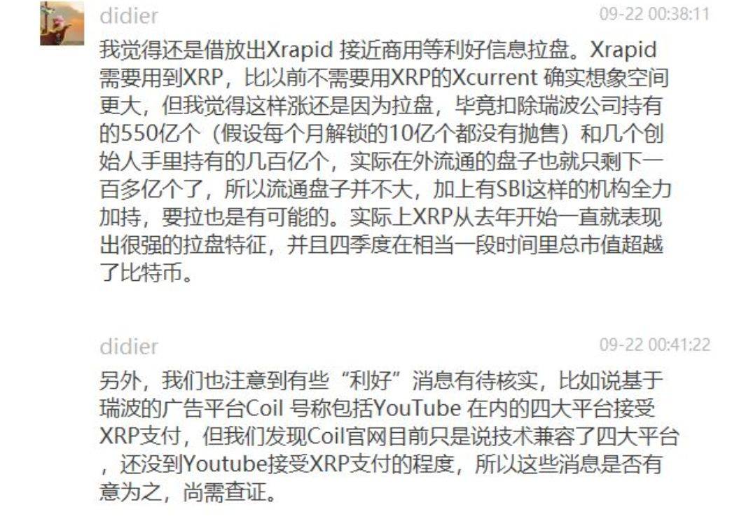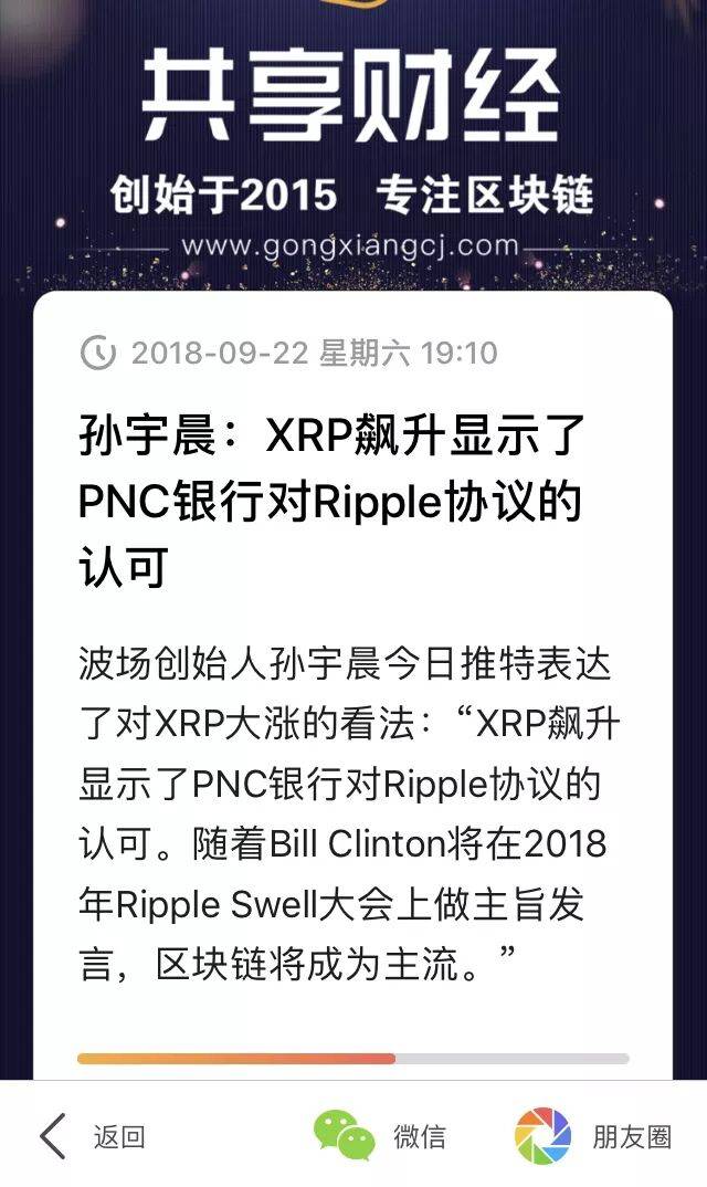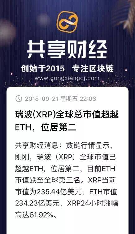 ![]() 共享财经 媒体 | 营销 | 咨询 ![]() 摘要:“这么大体量如此拉升第一次见,XRP给大家的启示就是市场不缺钱。”瑞波币昨晚大涨市值再超以太,让圈内大咖慨叹。 “这么大体量如此拉升第一次见,XRP给大家的启示就是市场不缺钱。”瑞波币昨晚大涨市值再超以太,让圈内大咖慨叹。 飙涨:市值再列全球第二 ![]() 昨晚,瑞波币XRP飙涨。 根据加密货币追踪网站CoinMarketCap.com的统计,昨晚瑞波币的市值一度站上233.9亿美元,超越了以太币的市值232亿美元,占据市值全球第二位时间长达四个小时之久。期间,XRP流通市值最高达到306亿美元。 ![]() 作为市值排名前十的币种,瑞波币在本周一度暴涨180%,熊市之下难免震撼人心。要知道,XRP作为今年表现最差的加密货币,在今年夏天,它从高位回落了90%以上。 市场人士认为,瑞波此轮暴涨,源于三大利好。 最早的利好消息来源于周一的一则报道。是日,瑞波公司的亚太和中东监管关系负责人Sagar Sarbhai对CNBC表示,服务类产品xRapid取得重大进展,最早“下个月左右”实现商用。xRapid使用瑞波币结算,将提升跨境转款的速度。瑞波CEO Brad Garlinghouse曾在6月预计,到明年年末有几十家银行运用xRapid。 到了周三,排名美国前十大的银行巨头PNC宣布,将使用RippleNet为其客户处理国际付款事宜。具体来说,PNC的财务管理部门将使用瑞波的区块链解决方案xCurrent,来加速美国商业客户的海外交易,例如通过发票立即进行付款等。 ![]() 周四,知名视频网站YouTube和Twitch宣布实现用户用XRP打赏播主的功能,此消息为瑞波币的大涨又埋下了一大伏笔。 瑞波(Ripple)是世界上第一个开放的支付网络,通过这个支付网络可以转账任意一种货币,包括美元、欧元、人民币、日元或者比特币,简便易行快捷,交易确认在几秒以内完成,交易费用几乎是零,没有所谓的跨行异地以及跨国支付费用。 Ripple将大部分XRP保留为加密货币。XRP是一种独立于公司的加密货币,可以在Ripple的平台上使用。上一次瑞波币的市值超越以太坊是在1月份,当时XRP从23美分跃升至3.3美元。 全球领先的社交交易和投资平台e投睿(eToro)伦敦分析师Matthew Newton认为,每当某个主流数字货币暴涨时,都会上新闻头条,吸引人们的注意力,进而可能带来增量流动性进入市场,进一步助推动数字货币上涨。 果不其然,昨日XRP资金净流入达5266万美元,位于资金净流入榜首。随后的BTC净流入4954万美元、EOS净流入1606万美元、ETH净流入1228万美元。 实际上,有市场人士指出,目前市场缺的是信心而并不缺钱。2017年之前,加密货币高增长,短短5个月时间,也就是2017年11月底,加密货币总市值一路突破3000亿美元。目前的回调,与其说是泡沫的破灭,更像是对自身行情的修复。 就在9月初,ICO咨询公司Satis Group发布了一份加密货币行业预测报告,报告预测到 2028 年,所有虚拟货币市场总市值将高达3.6 万亿美元。 该报告声称,超过90%的“加密资产价值将来自未来十年离岸存款的渗透”,预计这将推动所有加密货币市场的市值,从今天的约2000亿美元增加到2028年的3.57万亿美元。 Satis Grou还预计,明年加密货币市场总市值将达到5090亿美元,并估计市值在2021年将突破1万亿美元。 质疑:大涨是老庄控盘 币市久违的回暖,好似阳光穿透乌云。不过乌云仍在,并没有散去。 今天,Dfund合伙人李泉给瑞波币的大涨泼了一盆冷水。他说:“坐的一手好庄。瑞波币的几个利好间隔时间不短,并且没有那么重要,大涨仍然是老庄控盘的结果。长期来看,以太坊作为智能合约的主要载体,重要性还是超过瑞波的。仅从技术角度看,以太坊的社区也好,链上交易也好,活跃度远远超过瑞波。目前,以太坊正在经历它的艰难时刻,一旦挺过去,前途还是比瑞波更光明。” 同时,奇点咨询创始人郑迪同样认为瑞波有拉盘嫌疑。他表示,流通盘比例小、利好消息有待确认、R3和瑞波公司都有拉盘的动机。 ![]() 也有业内人士表示,瑞波经常有用消息拉盘的“黑历史”,难以给与太多信心。根据瑞波币的市值走势图(如下图),人们难免在脑子里蹦出这么一个词——“空气币”。 ![]() 截至记者发稿时,据统计从今早8时至今,XRP净流出资金已达578万美元。来得快,去的也快,或许真应了大佬“恶意拉盘”的话。 业内人士告诉记者,币圈的真真假假,链圈的鱼龙混杂,都是资本在缺乏有效监管下的原形毕露。行业需要发展,监管始终排在第一位。 日前,浙江大学区块链研究中心常务副主任、浙江大学软件学院副院长蔡亮表示,制约区块链行业发展最大的因素是监管。如何制定监管标准,提高监管技术水平和积累监管经验是区块链行业发展的关键所在。 大洋彼岸的美国,同样认同监管对于行业平稳发展的重要性。 由行业巨头Coinbase牵头组建的区块链行业协会(BA)的对外事务主管Kristin Smith,近日对媒体表示,该协会期待与国会议员以及美国证券交易委员会和CFTC等主要监管机构合作,倡导灵活、明智的法规,平衡消费者保护和市场诚信的需求,让创新公司蓬勃发展。据悉,BA的创始成员包括Coinbase、Circle、Digital Currency Group等。 美国国会议员Tom Emmer日前表示,美国应该优先加快区块链技术的发展,并创造出美国私营部门能够引领创新和进一步增长的环境。立法者应该采用新兴技术并提供一个明确的监管体系,使其能够在美国蓬勃发展。 无论如何,瑞波币的一波大涨,都给加密市场带来了一丝鲜活的