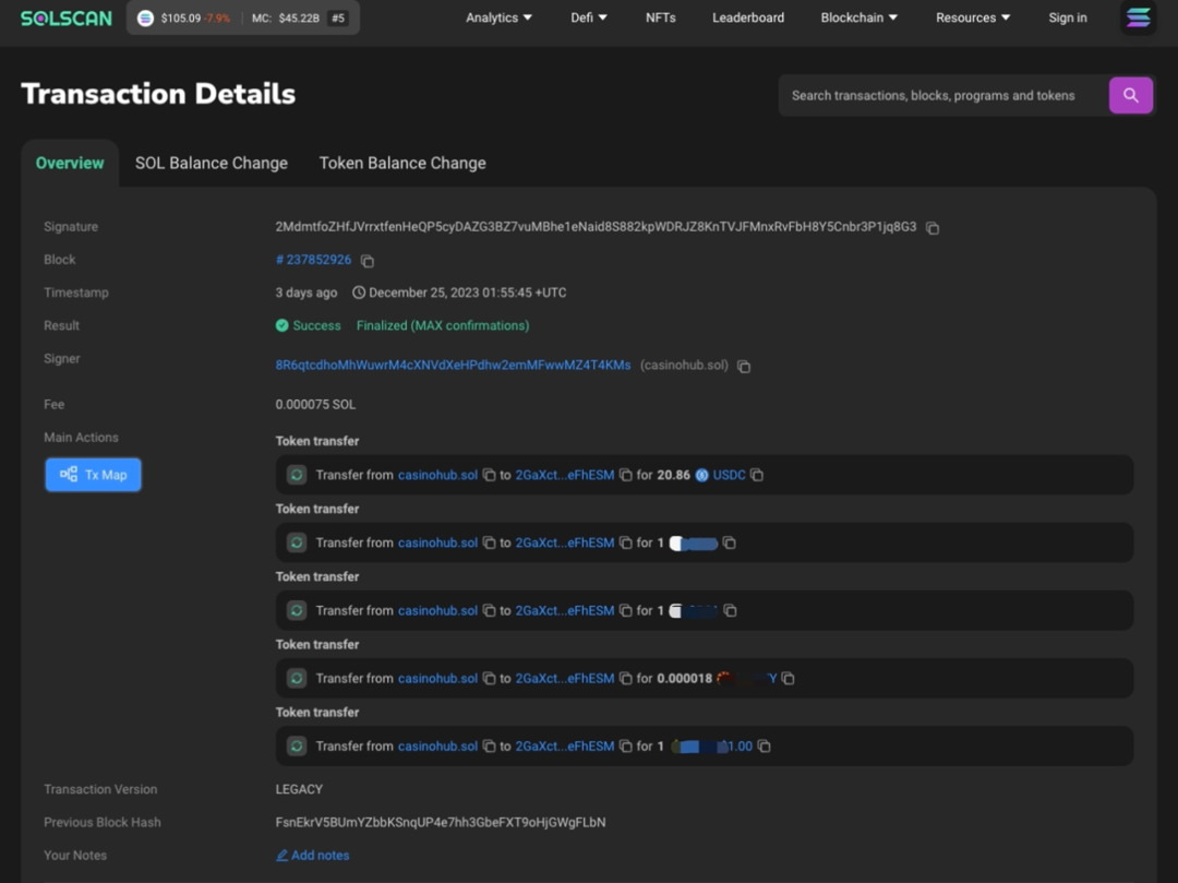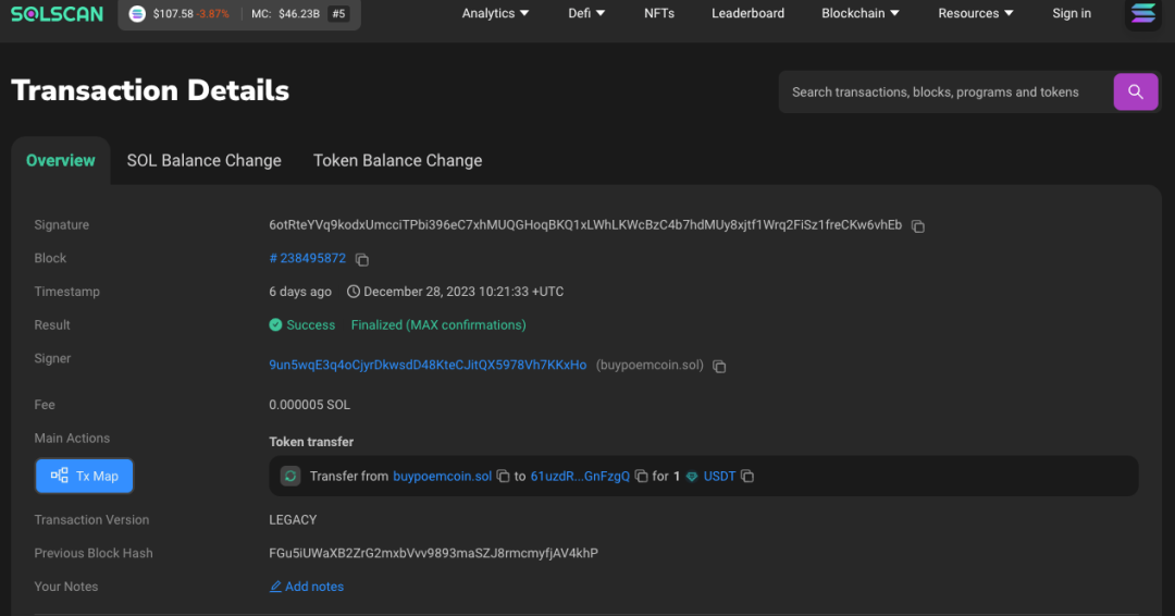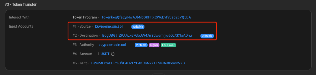 我们在 Main Actions 中可以看到转账双方的账户地址。 ![]() 在 Instruction Details 中,我们可以看到 SOL 转账交易的主要指令是 SOL Transfer,该指令旨在进行 SOL 的转账。通过详细查看该指令的详情,我们可以获得有关该指令调用的程序,以及涉及到的转账双方的账户地址等信息。 ![]() Token 转账交易以下交易是 USDT 的转账,与 SOL 交易类似。 ![]() 在 Instruction Details 部分,Token 交易通常首先调用 Create Associated Account 指令,为接收方创建一个 Token 账户(如果接收方尚未有相应账户),用于存储 USDT 余额等数据。 接着执行 Token Transfer 指令,完成 USDT 的转账。值得注意的是,与 SOL Transfer 指令不同,Token Transfer 指令中的 Source 和 Destination 不代表转账双方的直接账户地址,而是它们的 Token 账户(PDA 账户),这点需要特别注意。 ![]() Swap 交易下面是一笔 Swap 交易,用户将 USDT 兑换为 USDC。 ![]() 多个指令交易在包含多个指令的 Solana 交易中,涉及 SOL 的转账、Swap 交易以及 Token 的转账等多个操作。 ![]() 即便有多个指令,我们仍然能够通过 Instruction Details 查看交易执行的详细指令,了解每个步骤的具体操作。 资产安全俗话说,知己知彼,百战不殆。我们已经初步了解了 Solana 上的账户、Token 和交易。为规避资产被盗的风险,我们需要深入了解在使用 Solana 钱包时可能面临的风险。 私钥和助记词泄露根据慢雾区块链被黑档案库(https://hacked.slowmist.io) 统计,2023 年 9 起私钥泄露安全事件导致的损失就高达 8475 万美元。在慢雾 AML 团队处理的被盗案件中,私钥和助记词泄露导致资产被盗的事件占据了相当大的比例。因此,要保证 Solana 钱包上资产的安全,最重要的是管理好钱包私钥和助记词。 使用钱包在钱包使用过程中,签名是最需要关注的安全风险之一,尤其需要特别注意在 Solana 上与项目互动时所签名的信息。 而且,Solana 允许将多笔转账打包成一个交易,也即只需一次签名即可将钱包中的所有资产一次性转移。 下面我们来看一个实际案例: 某位受害者在一个钓鱼网站上误操作,仅仅点击了一次确认,导致钱包中的所有资产被一次性转走。究竟是什么操作让受害者只是签了一次名就能让黑客将所有资产转走呢? ![]() ![]() 是的,黑客利用了上文提到的机制和钱包的一个特点: 受害者使用的是 Phantom Wallet,这款钱包能够将多笔转账指令打包成一个交易,仅需一次签名即可完成整个过程。恰恰是这一功能成为黑客利用的突破口,导致受害者在一次签名中失去了所有资产。在使用钱包时,请用户务必谨慎确认每一次签名的操作,以免遭受损失。 Phantom Wallet 的官方文档中也明确介绍了这一关键功能: ![]() 总结在本期 Solana 科普文章中,我们首先了解了 Solana 账户的基础知识;接着深入研究了 Solana Token 的基本概念;随后探讨了在 Solana 上进行交易的相关内容。在保障钱包资产安全的部分,我们强调了私钥和助记词的安全保存,建议用户阅读慢雾出品的《区块链黑暗森林自救手册》:https://github.com/slowmist/Blockchain-dark-forest-selfguard-handbook/blob/main/README_CN.md 以获取更多安全建议;在使用钱包时,请用户务必小心确认每一次签名的操作,避免遭受损失。此外,阅读钱包文档中的安全提示至关重要,时刻保持警惕是保障资产安全的关键。 往期回顾 慢雾出品 | 2023 区块链安全与反洗钱年度报告 旧坑新伤 —— 授权恶意合约被盗分析 Ledger Connect Kit 被黑之谜 慢雾:警惕因使用 Replit 平台注册钱包造成的助记词泄漏 慢雾:流行 DeFi 项目基础安全风险分析 ![]() 慢雾导航 慢雾科技官网 https://www.slowmist.com/ 慢雾区官网 https://slowmist.io/ 慢雾 GitHub https://github.com/slowmist Telegram https://t.me/slowmistteam https://twitter.com/@slowmist_team Medium https://medium.com/@slowmist 知识星球 https://t.zsxq.com/Q3zNvvF |