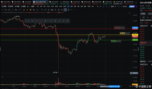 目前SOL在关键位置震荡,上方压力看 210.7 附近,下方支撑在 190 一线。