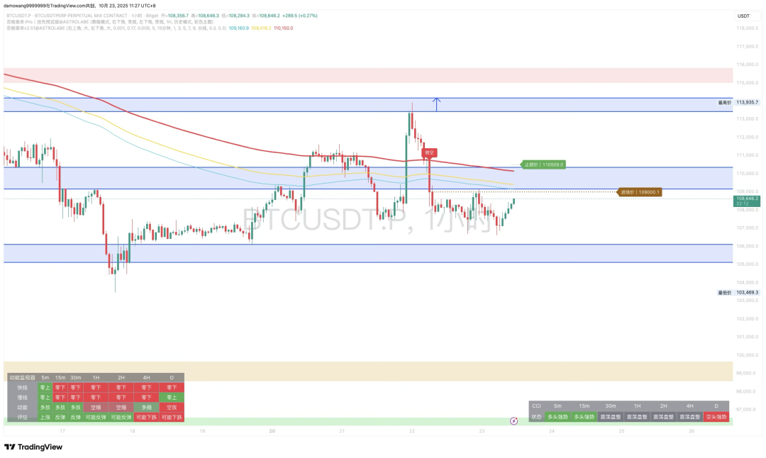 ![]() After experiencing a sharp decline, the market entered a weak recovery stage, and the long and short sides fell into a confrontation in front of key positions. The details of BTC and ETH will be explained below. (Today’s market analysis) Today's market analysis 2025.10.23 ![]() BTC Current price: $108,400 ![]() Intraday analysis 1️⃣ Structural interpretation During the current weak rebound, we continue to pay attention to the 109,000-110,000 range. The current trend is subtle and not very volatile, but it makes people very nervous. The current narrow range is the calm after the storm, gathering energy for the next wave of directional choices. Before the price effectively breaks through this range, we default that it will remain weak and volatile. 2️⃣ Capital flow & on-chain & exchange dynamics