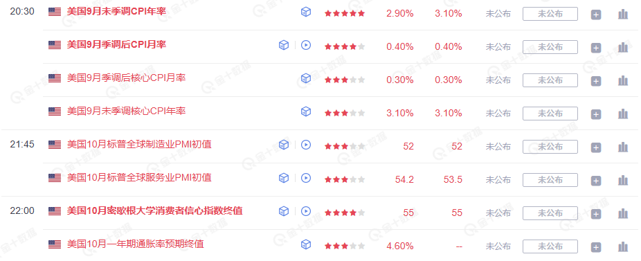 Institutional Views and ForecastsStandard Chartered released its short-term and long-term views on Bitcoin: Short-term: Its analysts predict that Bitcoin will "inevitably" briefly fall below the psychologically important $100,000 mark before the end of this week. Long-term: They view this potential pullback as a “last buying opportunity” and maintain their price target forecast for Bitcoin to reach $200,000 by the end of the year. Regulatory and Policy UpdatesThe "21st Century Financial Innovation and Technology Act" (the "Crypto Market Structure Act") was advanced. Key meeting: Dozens of crypto industry leaders, including Coinbase’s CEO, held nearly three hours of closed-door talks with lawmakers from both parties to discuss the details of the bill. Current status: The bill aims to establish a comprehensive regulatory framework for digital assets, but consideration is currently being delayed due to the threat of a potential U.S. government shutdown. US Democrats warn government shutdown heightens crypto market risks: Maxine Waters, leader of the U.S. Democratic House Financial Services Committee, warned on the 21st day of the government shutdown that the failure of President Trump and congressional Republicans to establish an appropriate regulatory framework for cryptocurrencies will exacerbate market risks. She pointed out that the crypto market flash crash on October 10 caused investors to lose billions of dollars, and called on the U.S. Securities and Exchange Commission (SEC) and the Commodity Futures Trading Commission (CFTC) to thoroughly investigate related insider trading behaviors. US SEC and CFTC strive to complete encryption regulatory plan by the end of the year: The U.S. Securities and Exchange Commission (SEC) and the Commodity Futures Trading Commission (CFTC) are pushing to complete cryptocurrency regulatory goals by the end of the year. The CFTC plans to manage spot crypto transactions and tokenized collateral, while the SEC is advancing Project Crypto’s proposed innovative regulatory exemption system. However, the government shutdown affects the work efficiency of both agencies. Technology Frontiers and Industry OutlookVitalik Buterin (co-founder of Ethereum): Proposed zero-knowledge proof (ZK) and fully homomorphic encryption (FHE) will jointly reshape the future of blockchain. He believes that cryptography is moving from a "cool" era to an "usability" era. Xiao Feng (Chairman of Wanxiang Blockchain): Pointed out that blockchain has moved from a “grassroots” innovation stage to a stage of standardized development and application explosion. Corporate and Institutional TrendsTesla: In its Q3 financial report, it disclosed that changes in the fair value of Bitcoin prices increased the company’s profits by approximately US$80 million. Standard Chartered Hong Kong: Announced that it will officially launch virtual asset ETF trading services in November to provide investors with more compliance channels. Other noteworthy eventsRussia: The Ministry of Finance and the Central Bank have agreed to legalize cryptocurrencies in foreign trade. Risk warning: Crypto exchange HTX (formerly Huobi) was sued by the British Financial Conduct Authority (FCA). In addition, the U.S. spot Bitcoin ETF experienced a single-day net outflow of approximately $101.39 million on October 22. Lubian mining pool’s stolen address transferred nearly 16,000 BTC: On October 22, a large transfer occurred again from the stolen wallet address of the Lubian mining pool, with a total of 15,959 Bitcoins transferred to 4 addresses, with a total value of approximately US$1.83 billion. SOL giant sold US$18.11 million: A mysterious whale institution sold 100,000 SOL to Binance in one go, worth US$18.11 million. The institution obtained nearly one million SOL four years ago and just unlocked it in April this year, and now it is starting to take profits frantically. ![]() First, focus on the US CPI data for September (released at 20:30), which is the "wind vane" of the Federal Reserve's monetary policy expectations. The previous value of the annual rate of CPI without seasonally adjustment was 2.90%, and the expected value was 3.10%. After the seasonally adjusted core CPI, the monthly rate and annual rate both remained at 0.30%, and the expected value of 3.10%. If the actual data is higher than expected, it means that inflation is still sticky, the Fed's "higher for longer" hawkish tone may continue, the U.S. dollar index may strengthen, and cryptocurrencies represented by Bitcoin are risky assets, and the probability of short-term pressure increases. ; If the data is lower than expected, the market's bets on the Federal Reserve's interest rate cuts will heat up, risk asset preferences will pick up, and the currency circle may usher in a liquidity-driven rebound. Looking at the S&P global PMI data (released at 21:45), the initial values of the manufacturing and service PMIs are expected to be 52 and 53.8 respectively. A PMI above 50 represents economic expansion. If the actual data is strong, it means that the U.S. economy is still resilient, and the Fed's monetary policy has greater "error room" and hawkish expectations are likely to be strengthened. ; If the data weakens and concerns about economic recession rise, the market will bet on the Federal Reserve's early turn, and the risk pricing logic of cryptocurrency will tilt toward "easing expectations." University of Michigan consumer confidence and inflation expectations (released at 22:00) are also key. Consumer confidence reflects economic expectations, and inflation expectations are the "long-term inflation anchor" indicator that the Fed focuses on. If inflation expectations rise, the Fed's determination to fight inflation will be priced in by the market, and the market liquidity environment will easily tighten. ; If confidence weakens and inflation expectations fall, the market's expectations for a policy shift will push up risk asset valuations