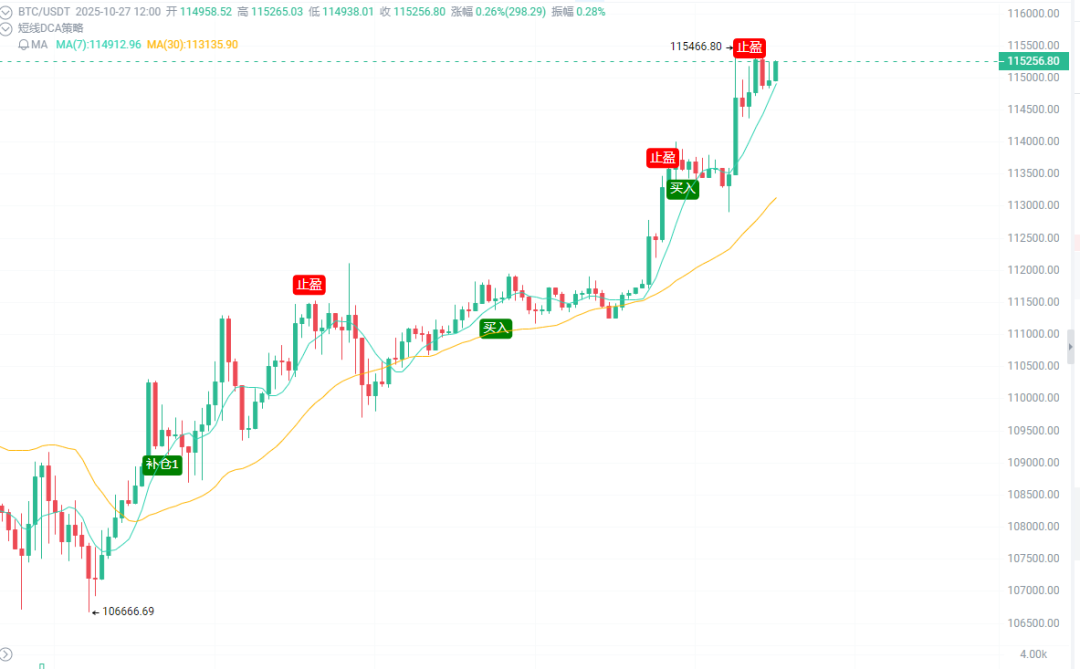 - Strategy basis: Given that the current market is in an upward trend, the momentum is enhanced and the MA long arrangement forms a bullish resonance with the golden cross (major premise). At the same time, 114903.64 is a strong support level, and the price may rebound in this area (minor premise). Therefore, a stable strategy of stepping back on the support level and buying low is adopted to follow the trend and reduce risks (conclusion).