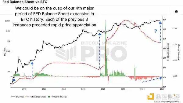 Is Bitcoin finally shaking off its four-year cycle pattern, or is this bull market coming to an end? By examining historical growth rates, liquidity data, and macroeconomic correlations, we can better understand whether the current cycle is truly diverging and what that means for investors in the coming months. cycle durationAnalyzing Bitcoin’s gains since the cycle low, we can see that Bitcoin has now surpassed the duration from cycle low to cycle high in previous bull markets. The 2018-2022 cycle peaked 1,059 days after its previous bear market low, and the current cycle has now exceeded that length. If we calculate the average length of the past two complete market cycles, Bitcoin has surpassed the historical average and is on the verge of surpassing the 2017 cycle length in the coming days. ![]() Figure 1: BTC growth since the cycle low suggests that the current cycle is longer than the previous two 4-year cycles. Diminishing impactHistorically, the roots of Bitcoin's four-year cycle lie in its halving event, in which block rewards and the inflation rate are cut in half. Each halving triggers a dramatic supply shock, driving a sharp rise in the bull market. However, this cycle is playing out differently. Following the latest halving, Bitcoin experienced five months of sideways trading, rather than the strong gains seen after previous halvings. Although the price has increased since then, the momentum has been weaker, leading many to question whether the halving has lost its influence. ![]() Figure 2: Bitcoin’s circulating supply and diminishing impact of marginal inflation. With the current circulating supply exceeding 95% of Bitcoin's final total supply (21 million), marginal supply reductions may no longer be as significant. Currently, miners are issuing approximately 450 newly mined Bitcoins every day, an amount that can easily be absorbed by a handful of institutional buyers or exchange-traded funds (ETFs). This means that the halving itself may no longer be the main driver of the Bitcoin market cycle. liquidity cycleWhen we look at global broad money supply (M2) versus Bitcoin year-over-year, we can see a clear pattern. Every major Bitcoin bottom has coincided almost perfectly with a trough in global M2 liquidity growth. ![]() Figure 3: Global M2 and BTC (year-on-year) have historically been almost identical. If we juxtapose the Bitcoin halving event with the M2 trough, we see that halvings typically lag the liquidity cycle, suggesting that liquidity expansion, not the halving event, is the real catalyst for Bitcoin's rise. This is not unique to Bitcoin. Gold has behaved the same way for decades, with its price performance closely tied to how quickly global M2 expands or contracts. negative correlationThe key to this liquidity story lies in the U.S. Dollar Index (DXY). Historically, Bitcoin’s year-over-year trend with DXY has been almost entirely inversely correlated. When the U.S. dollar strengthens year over year, Bitcoin tends to enter a bear market. When the U.S. dollar weakens, Bitcoin will start a new bull market. This inverse relationship also applies to gold and the stock market, underscoring the broader theory of currency devaluation cycles, where hard assets quickly appreciate in value as fiat currencies lose their purchasing power. ![]() Figure 4: Strong negative correlation between BTC and DXY (year-over-year) and major market turns. Currently, the U.S. Dollar Index is in a short-term uptrend, consistent with Bitcoin’s recent consolidation trend. However, the index is now approaching a key historical resistance area that has previously marked a major turning point and signaled a longer-term decline for the U.S. Dollar Index. If this pattern continues, the next big move lower in the US dollar could trigger a new upcycle for Bitcoin. quantitative tighteningRecent comments from Federal Reserve Chairman Jerome Powell suggest that the era of balance sheet reduction (quantitative tightening) may be coming to an end. Judging from the comparison of the Fed's balance sheet and Bitcoin, historically, balance sheet expansion and the start of a new round of quantitative easing have often coincided with sharp increases in Bitcoin and the stock market. ![]() Figure 5: Fed balance sheet inflection points have historically coincided with Bitcoin bull cycle expansions. In the two years after the Fed's previous balance sheet expansions, the S&P 500 returned an average of 47%, more than five times the average two-year return during the neutral period. If the Fed does enter a new phase of easing, this could not only prolong Bitcoin’s current cycle but also set the stage for a liquidity-driven rally in risk assets. in conclusionBitcoin has now surpassed the time span of its first two cycles, leading many to question whether the four-year cycle rule still applies. But when we step back and look, we see a different story, one driven not by preset scarcity but by global liquidity, fiat currency debasement, and macro capital flows. The four-year cycle may not be broken, but it may just evolve. If the U.S. dollar weakens, the Fed pauses its tightening policy, and global M2 growth accelerates, then Bitcoin may still have room to rise. For now, as always, the best strategy remains: respond proactively, not predict. Stay data-driven, stay patient, and keep an eye on liquidity. Kind tipsCryptocurrencies are highly speculative and emotionally volatile. For sound investment, it is crucial that an independent risk management system should be established. Paying attention to one's own investment philosophy rather than blind guessing is a key quality for successful investors. Sharing of intelligent quantitative trading auxiliary tools in the currency circle What is quantitative trading?Quantitative trading refers to using advanced mathematical models to replace human subjective judgments, using computer technology to select various "high probability" events that can bring excess returns from