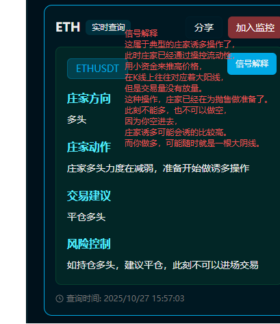 Guys, urgent notice! Ethereum's breakthrough of $4,200 is not the starting point of the bull market at all, but a "bully trap" carefully planned by the bookmakers! Monitoring data clearly shows: "The strength of the bullish market makers is weakening." This wave of rise is purely to invite you to the urn! (Monitoring real hammer👇) ![]() Look at this horrifying detail: The "smart money" who accurately bought the bottom after the "1011 flash crash" has placed a huge sell order of nearly 30,000 ETH in the range of 4190-5555 US dollars! It's like the God of Gamblers got a straight flush, but suddenly started selling off a large amount of chips - you taste it, you taste it carefully! What’s even more frightening is that the technical side has sounded the alarm: the 1-hour RSI is overbought and passivated, and the MACD is diverging from the top. This is simply a textbook top signal. Rushing in to go long now is equivalent to dancing in a minefield, and you may be blown to pieces at any time! My advice is clear: “Close all long positions immediately! ” Don’t be fooled by the illusion of “breaking through $4,200”. This is clearly the starting signal for the dealers to prepare for harvest. Remember, the secret to surviving in the currency circle is: when the dealer starts to lure bulls, you run faster than the dealer! As long as the green hills remain, there is no need to worry about running out of firewood. When this wave of bull market is over and the price falls back to the range of 3900-4000 US dollars, it will be the golden moment for us to re-enter the market and pick up cheap chips! Now, please stop, short position to save your life! #ETH #ETH market forecast |