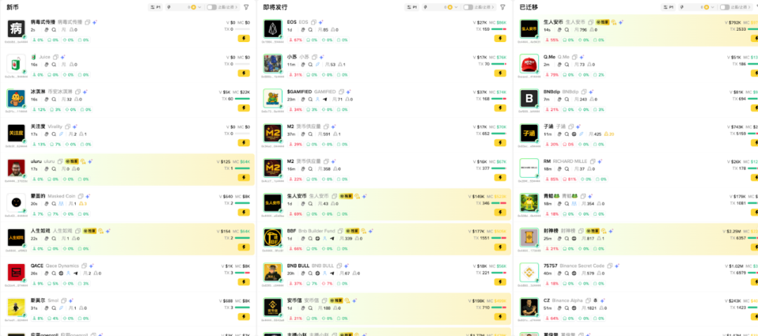 When these four signals appear at the same time, it means that a project’s narrative, community, and funding are resonating—this is the critical moment when Alpha projects enter the outbreak zone. Specific operational level: 1. Pay close attention to Binance Alpha’s new project announcement, which is expected to usher in trading enthusiasm in the short term. In addition, Binance has previously launched the Pre-TGE Prime Sale model, which is equivalent to the "advanced version" of the original Pre-TGE, with a larger sales scale and a longer cycle. The participation process is divided into three steps - first use BNB to recharge and subscribe (excess allocation, everyone can participate). After the subscription is completed, the system will issue tokens in proportion. After the project TGE is launched, it can be opened for trading on the Binance Alpha market. 2. Use XHunt to track dynamics in real time XHunt has launched a new BNB Feed function, which integrates important updates related to the Binance ecosystem and comes with AI summaries. At the same time, it supports sound reminders and pop-up push notifications, which is suitable for Alpha traders to respond quickly 24/7. 3. Participate in early transactions of on-chain DEX such as PancakeSwap and Aster For on-chain players with a keen sense of smell, immediately discovering new tokens with a sudden increase in trading volume on DEX lists such as PancakeSwap is one of the effective ways to catch dark horses. 4. Use Binance Wallet “Meme Rush” function Binance Wallet launches the Meme Rush function. To put it simply: Meme Rush is the Launchpad launched by Binance Wallet in cooperation with Four meme. It differs from ordinary Launchpad in two core ways: First, participation is limited to users using the Binance App’s built-in Web3 wallet (who have completed KYC). Secondly, the internal disk migration limit is higher. So, how can we use Meme Rush to find and participate in early Meme projects? Its interface is usually divided into three core areas, representing different stages of the project: new currency, upcoming release, and migrated. >New coins: The projects in this area are mixed, with relatively high risk and noise. It is suitable for preliminary research and screening by experienced players who like to mine ultra-early Alpha. >Upcoming Issues: This section is a list of stocks that are about to be released from the internal market to the external market, and is a list with funds to pay for orders. If we are not very P, we can focus on the interesting items in this list. >Migrated: This part is the list from the internal disk to the external disk. This part is available for purchase by all users. It also belongs to the best of the best. ![]() In addition to chain scanning functions such as Meme Rush, Binance Wallet also provides a decision-making tool-KOL monitoring list. The biggest innovation of this function is that it binds the wallet address with the KOL identity. While other products let you track a bunch of nameless addresses, Binance Wallet lets you track the KOL’s portfolio directly. It clearly displays the complete positions and detailed transaction records of a specific KOL, and can intuitively analyze the positions, winning rates and investment styles of different KOLs. ![]() 05 Long-term outlook: Market sustainability driven by the flywheel effect of BNB and BNB Chain As this round of BNB Chain market evolves, a question worthy of attention is: Can this rise driven by the resonance of funds, users and narratives be transformed into a long-term bull market for the BNB ecosystem? 5.1 Flywheel effect: positive feedback loop from transaction to priceFrom a fundamental perspective, BNB Chain is forming two powerful "flywheel effects" to provide support for the sustainability of the market: (1) Transaction - Burning Flywheel The surge in on-chain transaction volume has provided direct support for BNB currency prices. As the fuel of the BSC network, BNB's economic model includes a dual deflation mechanism: on the one hand, Binance implements automatic destruction of BNB every quarter, and on the other hand, implements BEP-95 real-time burning on the BSC chain, directly destroying part of the handling fees to reduce supply. Under the current meme trading frenzy, a large amount of BNB continues to be consumed. The continued burning brought about by this transaction demand strengthens the scarcity of BNB. Therefore, this round of BNB’s rise is not only driven by market sentiment, but also reflects the unique intrinsic value and deflation mechanism of the BNB Chain ecosystem. When users continue to trade Meme coins on the chain, it virtually pushes up the intrinsic value of BNB, thus forming a virtuous cycle of "the higher the usage - the more it is destroyed - the higher the price". (2) Ecological-funding flywheel The return of funds brought about by the ecological expansion of BNB Chain cannot be underestimated. On the one hand, new projects emerge one after another to attract investors. If users want to participate in popular opportunities on the BSC chain, they must purchase BNB as gas or trading pair positions, bringing continuous buying. On the other hand, in order to cash in on their gains, many Meme coin winners eventually chose to exchange part of their profits back into BNB or invest in other projects in the BNB ecosystem, leaving most of the funds circulating within the BNB Chain. In the long run, as BNB Chain continues to launch technological upgrades, the types of applications and user scale that can be carried on the chain will further expand, injecting new growth points into the ecosystem. As long as the two wheels of ecological prosperity and capital inflows continue to roll, BNB currency prices and the entire ecological market value are expected to maintain a strong upward trend. 5.2 BNB Chain’s long-term value and long-term bull logicIf the flywheel explains the "mechanical principle" of BNB pric
