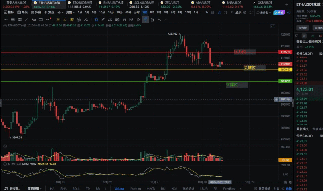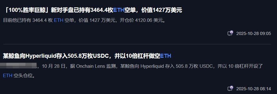 The market is like a tug-of-war. Now, two heavyweight players suddenly appeared on the short side, while news of teammates selling came from the long side - the rope is moving in the direction of the short side! Is today's ETH drama a desperate counterattack after a "fake fall" or the tranquility before the waterfall market? Let me, an old leek, use a magnifying glass to help you see the key clues. The news hides murderous intent![]() The news of two whale short orders is like two signal flares: 14.27 million USD short order + 5.05 million USDC short position with ten times leverage, which is equivalent to installing a "dual engine slide" on the market. What’s even more worrying is that yesterday the Ethereum Treasury Company sold $40 million in ETH to repurchase shares, indicating that the institutions themselves are causing trouble. This triple negative stack is equivalent to putting an "overload warning" sign on ETH. Technical game of life and death![]() The current 1-hour K-line is struggling near 4123. Focus on three lines of defense: