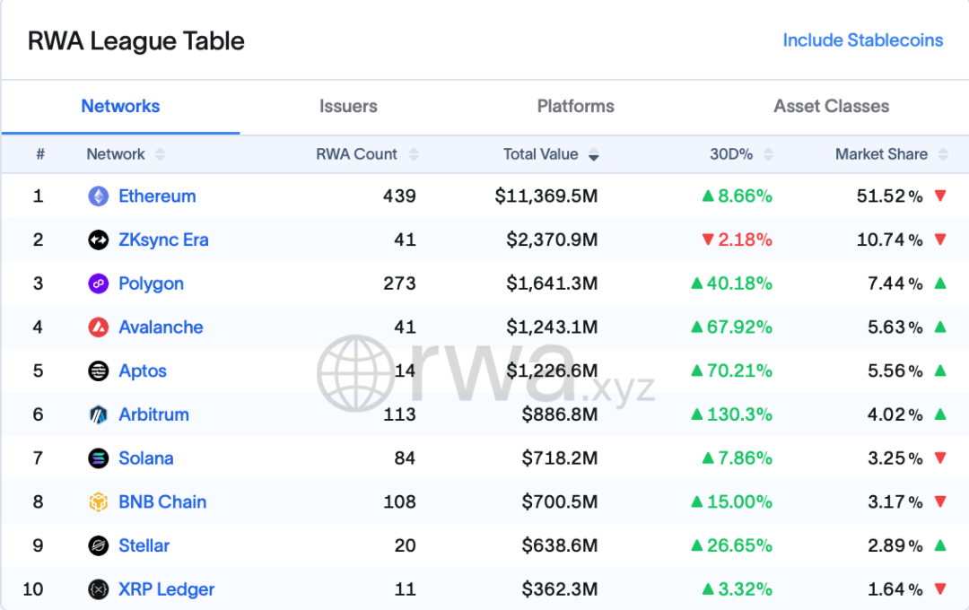 According to RWA.xyz data, RWA assets on the Solana chain have reached94 species, with a total market value of approximatelyUS$700 million, ranking 7th among major public chains, accounting for 50% of the total RWA size in the market3.25%。