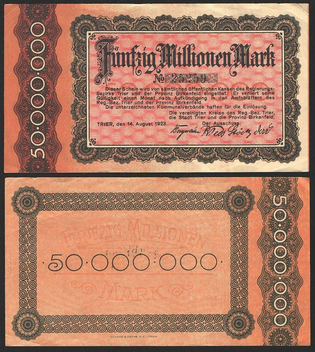 The colored dots in the chart below represent the increase in Bitcoin price relative to the "4-year moving average". It can be seen that in each cycle, the Bitcoin price will reach 4.5 times or even higher than the moving average. This cycle will be the same - even if it doesn't, Bitcoin will continue to rise steadily, or even climb in a stair-step forever. ![]() You know, if Bitcoin wants to plummet 70%-80%, the premise is that there is a "peak of sharp rise before the peak collapse", but even if it plummets, its bottom price is likely to be higher than the current price (about 111,000 US dollars). Many people are panicking now that Bitcoin is at $111,000, but this panic is unnecessary. 3. Historical Mirror: The Currency Devaluation of the Weimar Republic Reveals the Ultimate Value of Hard AssetsThe chart below shows the "Weimar Mark-denominated gold price" from 1914 to 1923. This period of history is very revealing: during the process of currency depreciation, asset prices will accelerate, and volatility will not decrease, but will increase. ![]() Many people believe that Bitcoin’s volatility will decrease over time, but this assumption lacks evidence. Bitcoin is a scarce asset with an inelastic supply—if someone wants to buy it, someone else must be convinced to sell. This means that there will inevitably be a "spike" or "revaluation event" in the future, when the fluctuations of the past few months will seem insignificant in the future years. Let’s look specifically at the devaluation of the Weimar mark: In 1914, 1 ounce of gold was worth only 1 mark; In 1923, 1 ounce of gold skyrocketed to 1 trillion marks. During this period, some people must have sold gold midway, thinking that "it was smart to earn marks", but in the end they found that the mark was worthless - those who sold it at 100 marks would miss out on the subsequent market rise to 1,000 marks. ; Those who sell for 1,000 marks will miss the opportunity of 10,000 marks ; Those who sell at 100,000 marks will miss the increase of 1 million marks. Eventually, the price of gold reached 1 trillion marks per ounce. ![]() More intuitively are the changes in Weimar Mark banknotes: