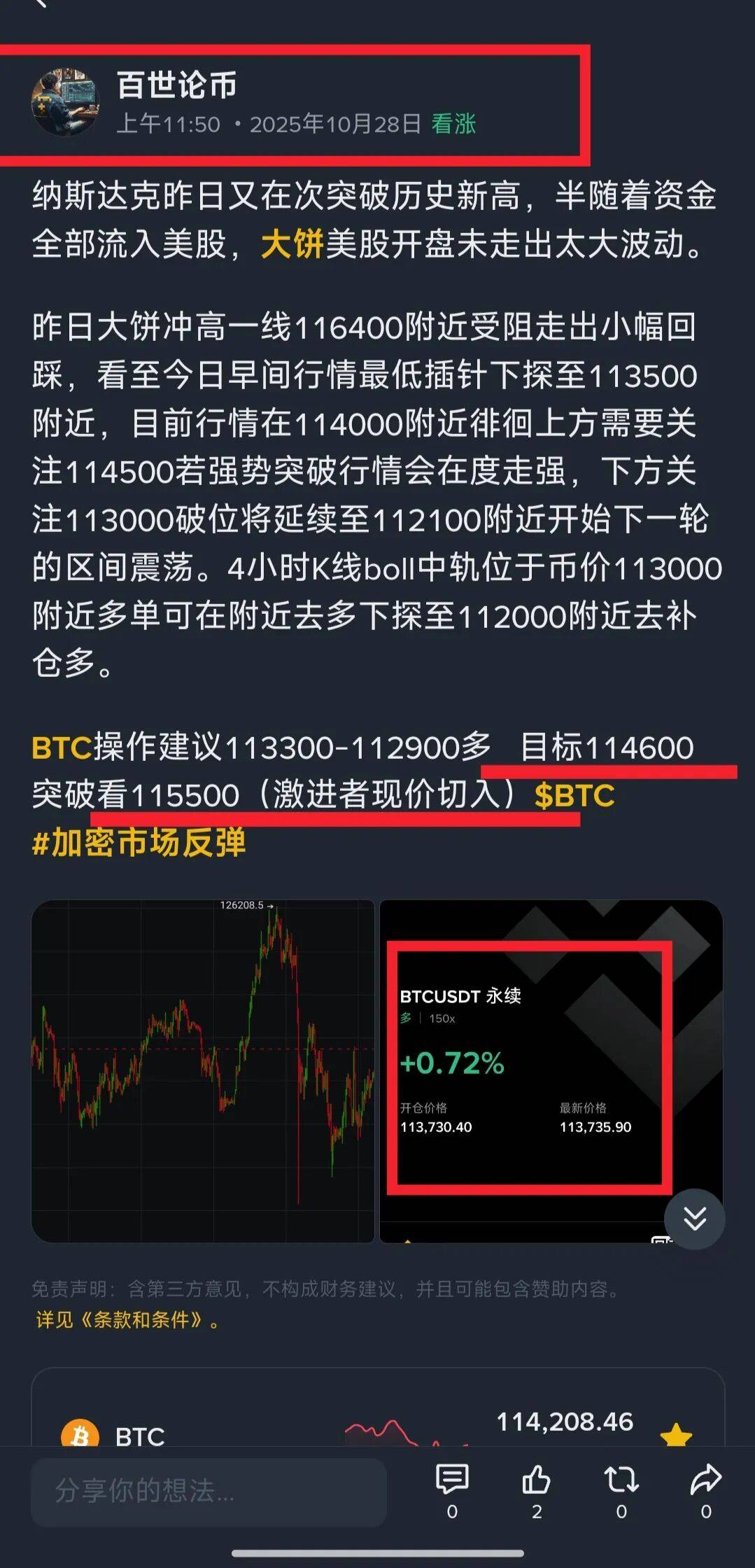 The Fed interest rate storm is coming tonight. BTC.ETH.View on 10.29 The market bottoms in despair, rises in hesitation, and peaks in madness. This sentence aptly describes the current turbulent pattern of the currency market. Yesterday, the current price of BTC was around 113,700. For long orders, the price reached around 115,500. In the evening, US stocks opened strongly and rose. In the live broadcast room, the pressure level of 116,000 was all out. After rising high, it quickly inserted the pin to around 1141, and continued to pull back, hovering around 1155, which was still a top-bottom switching position in the early morning. After the opening of the Asian market in the morning, the market continued to fall to the 112 line. If the Fed is biased toward hawks in the evening, the market will continue to fall. If 25 basis points rise to 50 basis points, the market will once again break the high point. There is currently a 98% probability of cutting interest rates by 50 basis points. BTC operation suggestion is over 111300-111700, defend 900 points, target 113800 breakthrough, see 114500-115300 (current price for radicals) ETH operation suggestion is more than 3925-3942, defend 50 points, target 4060 breakthrough, see 4110 ![]() ![]() ![]() ![]() ![]() ![]() ![]() ![]() |