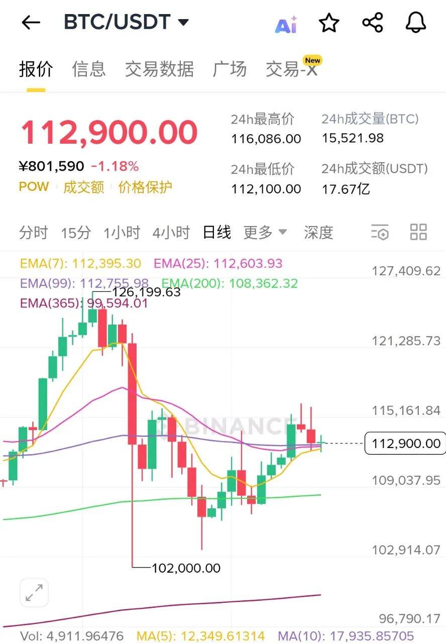 As of October 29, 2025, today’s Bitcoin (BTC) market is as follows:![]() --- 📊 Price Performance - Current price: ~112,412 (as of 21:11 UTC) - 24-hour drop: -1.85% (down approximately 2,114) - Intraday fluctuation range: 112,412 - 115,967 - Previous closing price: 114,117 --- 📈 Trend analysis - BTC once reached 116,094 yesterday, but then fell back, showing obvious selling pressure at high levels. - The current price has received certain buying support near 112,500, and the short-term trend has been volatile. - The market is awaiting the results of the Federal Reserve's FOMC meeting (2:30 a.m. on October 30, Beijing time), and investor sentiment is cautious, leading to increased volatility. --- 🔍 Technical signals - TradingView technical indicators show: - Daily level: Neutral - 1-week level: Buy signal - 1 month level: Buy --- 📌 Summary > Today, BTC overall showed a rising and falling trend, and entered a stage of shock consolidation in the short term. If the support of 112,000 is maintained, the market outlook is still expected to challenge 116,000 or even 120,000; If it falls below, it may further pull back to seek support near 110,000. Investors are advised to pay close attention to the short-term impact of the Fed's policy statement on the market. --- If you have specific positions or want to discuss operating strategies, you are welcome to continue to ask questions. ![]() |