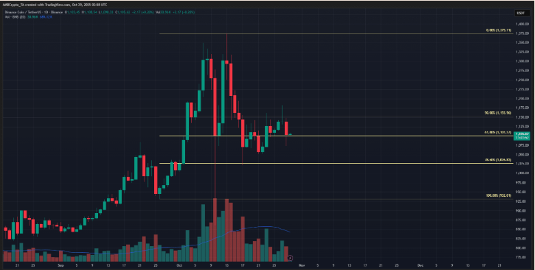 If you don’t know what to do in the bull market, you are welcome to scan the code to join the group for free. The spot code and layout strategy of the bull market can be shared for free. Welcome to private message me to join us Penguin number can be added: 3838974575![]() Recently, the cryptocurrency market has entered an adjustment phase again. Bitcoin (BTC) encountered resistance at the key resistance level of $116,000, and short-term currency holders chose to take profits at high levels, driving the entire altcoin sector to generally fall by about 2.5% in the past ten hours. In this wave of decline, Binance Coin (BNB) was also under pressure, falling by 3.84%. Despite this, its price still holds firmly at the $1,000 mark. Whether this support level can continue to be held has become the focus of market attention. ![]() BNB remains above support, but pressure is evidentJudging from the daily chart structure, the overall trend of BNB is still within the mid-term upward trend, but the price performance in the past ten days has been relatively weak. Especially since it failed to hold the low of US$1,100 on October 17, market sentiment has become obviously cautious. Technically, the Fibonacci 78.6% retracement level (approximately $1,026) has become the current key defensive point. Support at this level remains in effect, but a close below this range would be an early signal that bulls have lost momentum, potentially triggering a deeper correction. ![]() Long-short game: market sentiment is bearish but tends to be balancedAccording to the latest BNB long/short ratio data (buy/sell ratio), the indicator recorded 0.87 on Tuesday. This means that sellers have a slight advantage and the market is dominated by mild bearishness in the short term. ![]() The change in this ratio is highly correlated with the trend of Bitcoin - when BTC encountered resistance at $1,140, selling increased significantly, which also suppressed BNB's upside space to a certain extent. However, the ratio has tended to balance in recent hours, indicating that short-term selling pressure has eased, and the next trend will still depend on whether Bitcoin can return to strong territory. Technical structure outlook: key points become trend boundariesOverall, BNB is currently in a stage of "support but lack of momentum"**. Buying power is not yet enough to drive a strong rebound, but the market still has some resilience to hold key support: